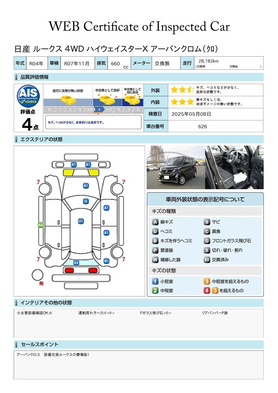 アーバンクロム 装備充実ルークスの豪華版!車線逸脱警報 衝突軽減ブレーキ アラウンドビュー 運転支援システム 前後ドライブレコーダー
