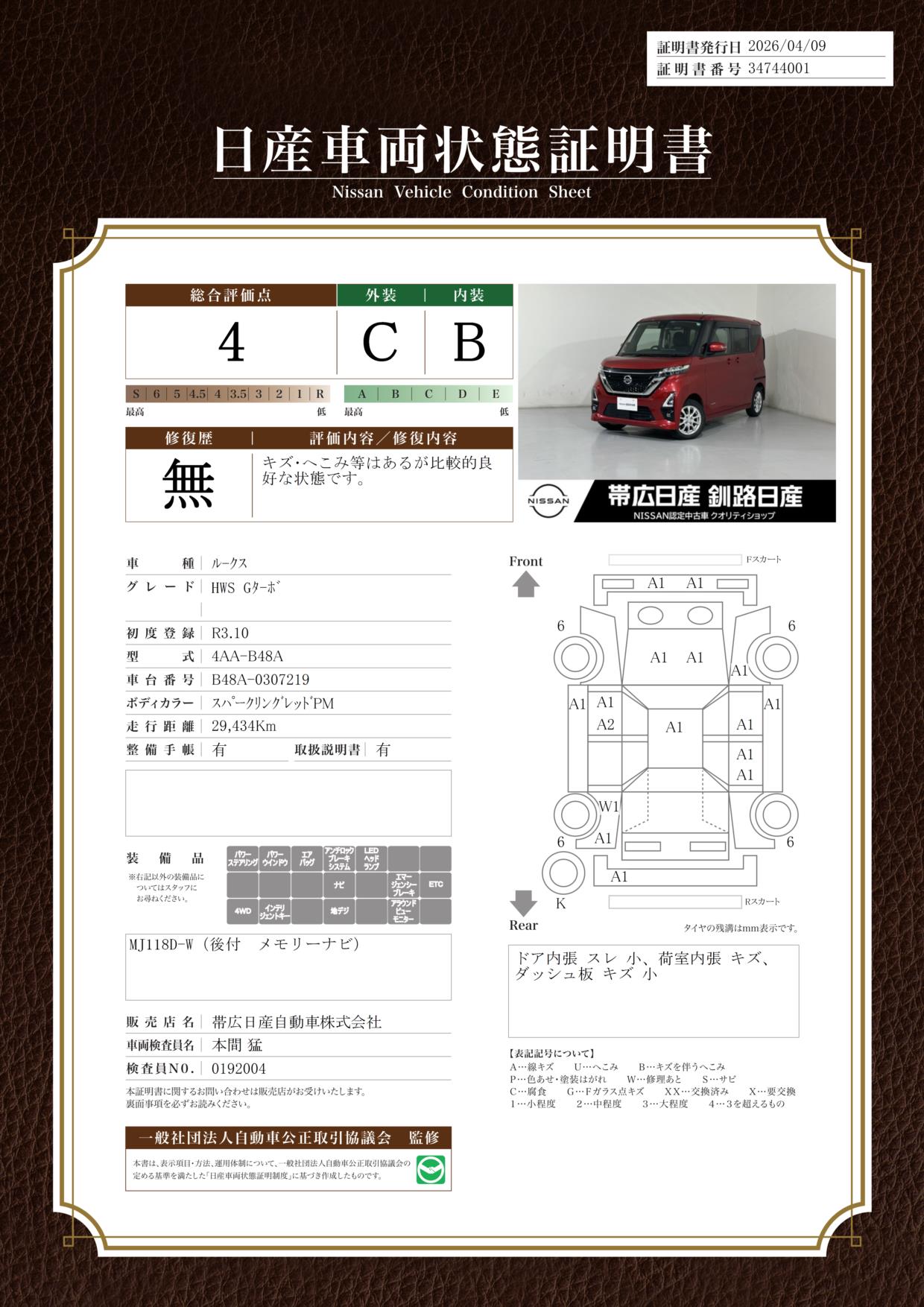 日産認定中古車│力強い走りを体感できるターボグレードのルークスが入庫しました!障害物センサー衝突被害軽減ブレーキ横滑り防止装置アクセル踏み間違い防止装置定期点検記録簿