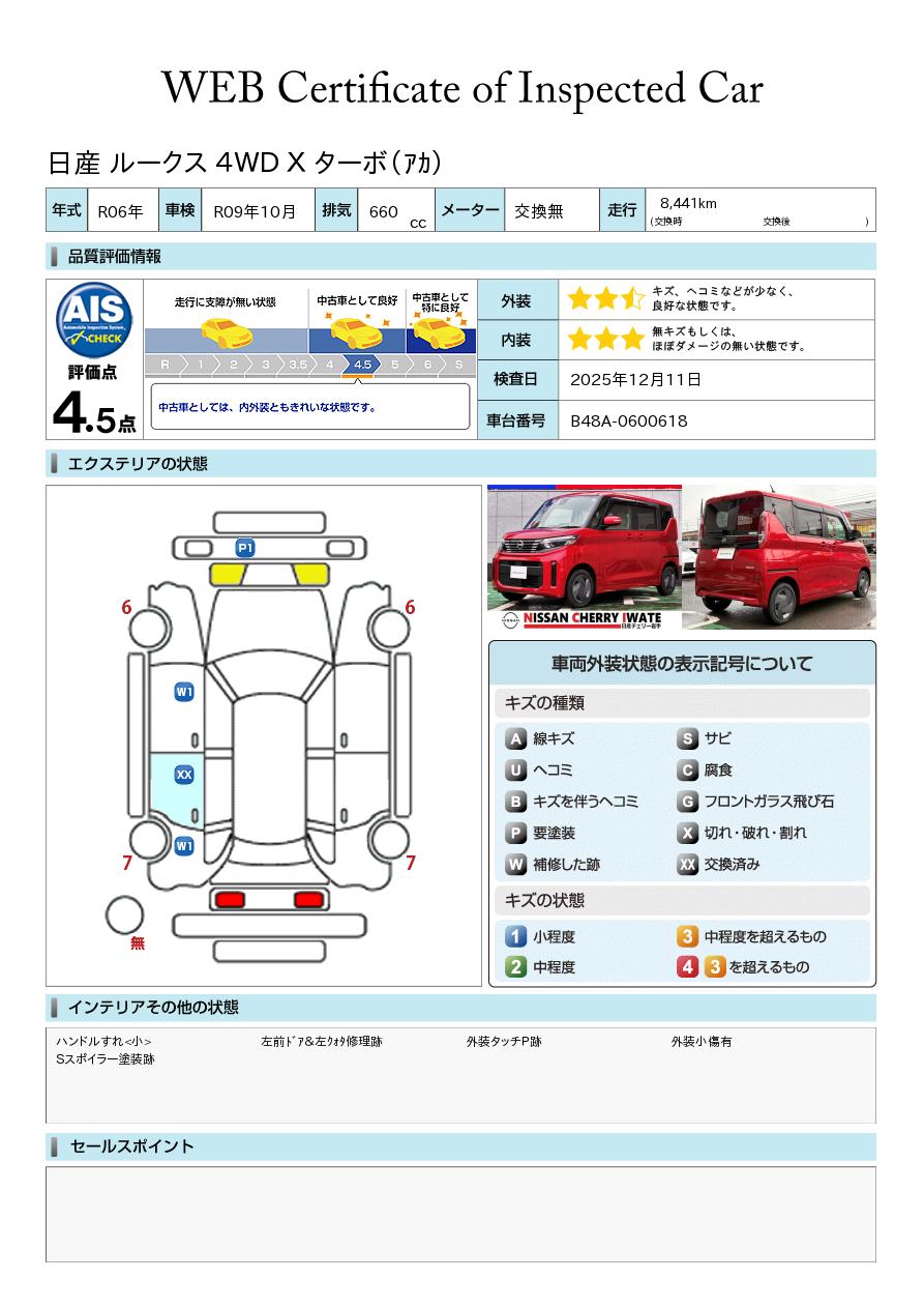 ルークス 660cc 660 ハイウェイスターX 4WD 5イヤーズコートエクセレント施工 ノック