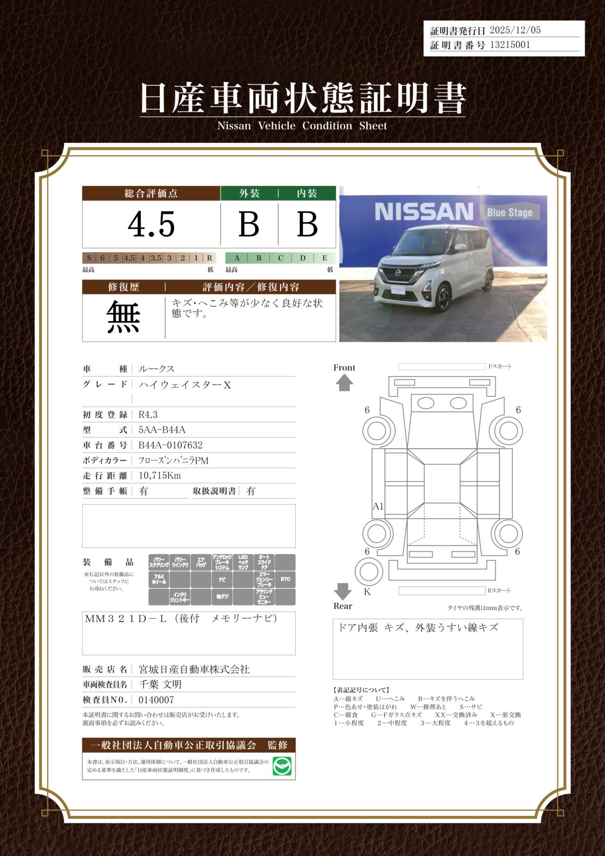 現状車検切れの状態ですが、ご成約時に新しく車検を実施します。車検費用は車両価格に含まれています。