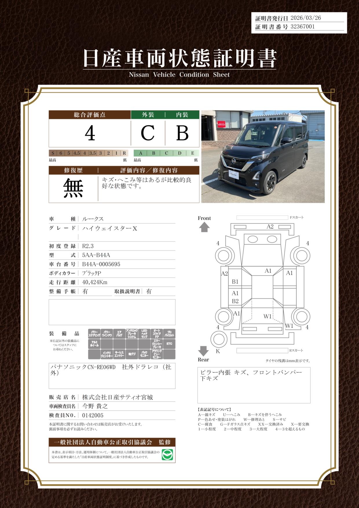 現状車検切れの状態ですが、ご成約時に新しく車検を実施します。車検費用は車両価格に含まれています。