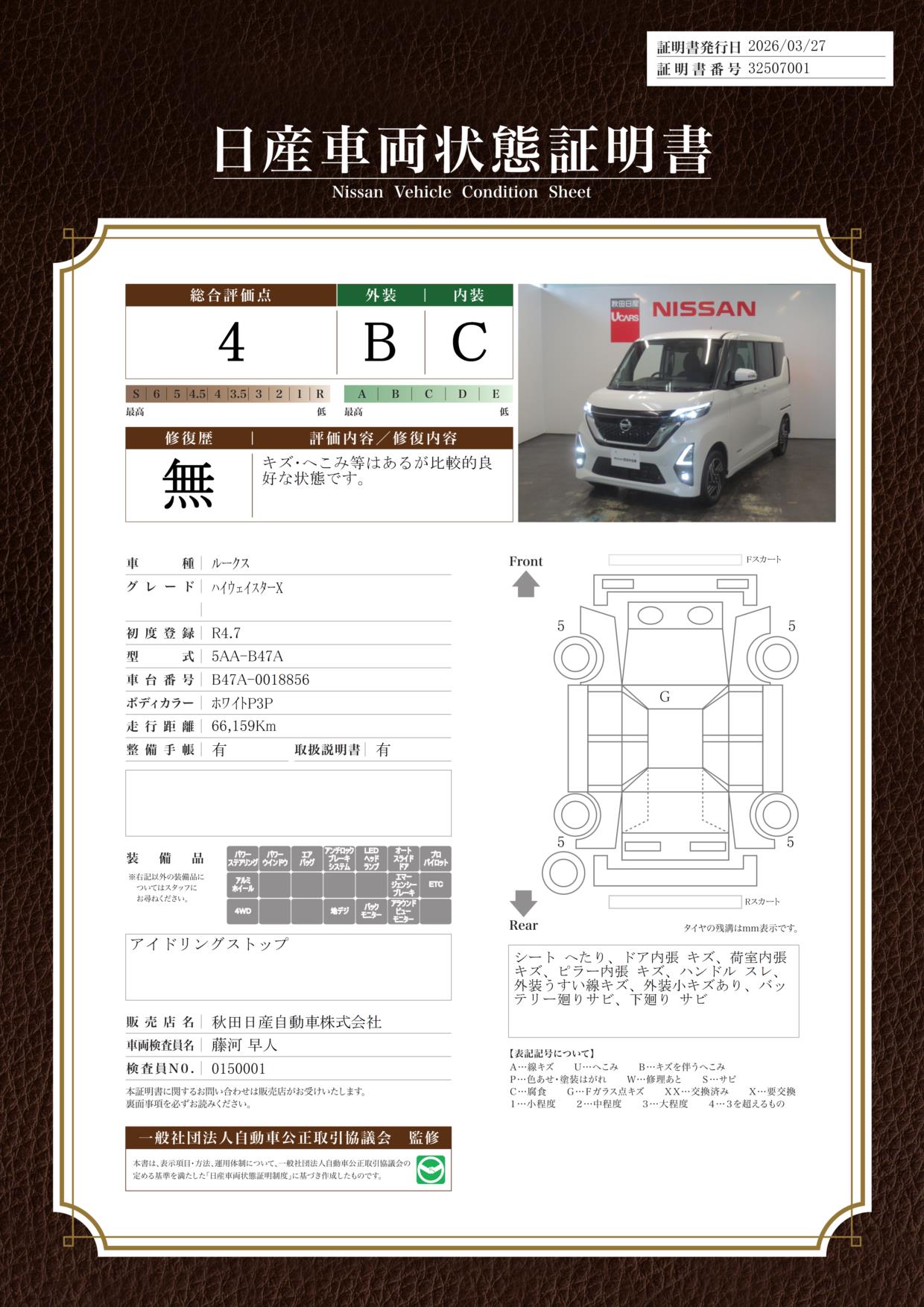 現状括弧書き内の年月まで車検有効期限が残っていますが、ご成約時に新しく車検を取り直します。なお取り直しの費用は車両価格に含まれています。