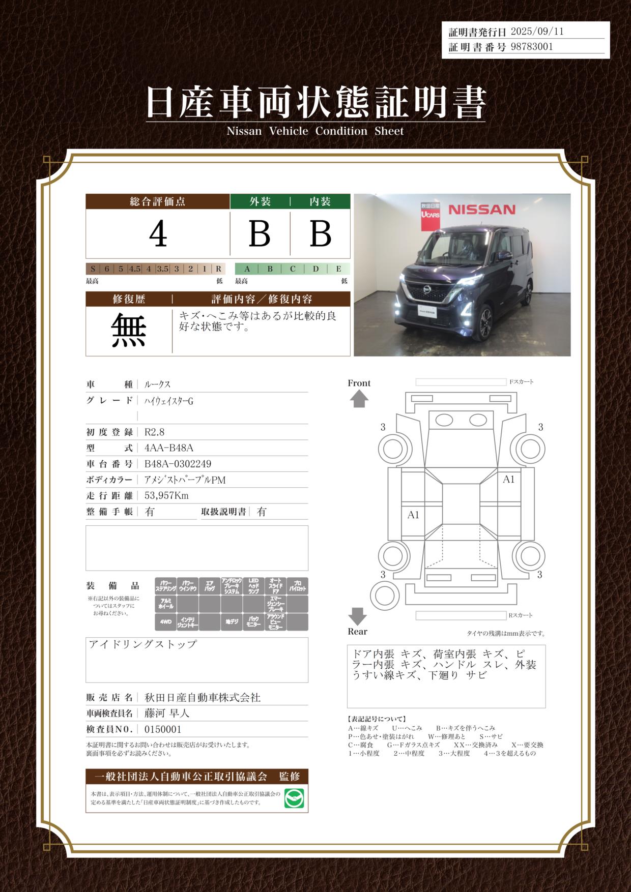現状括弧書き内の年月まで車検有効期限が残っていますが、ご成約時に新しく車検を取り直します。なお取り直しの費用は車両価格に含まれています。