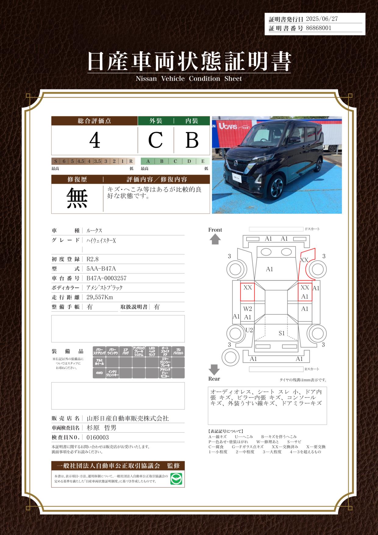 ルークス 660cc 660 ハイウェイスターX 4WD アラビュー/エマブレ/エンジンスタータ