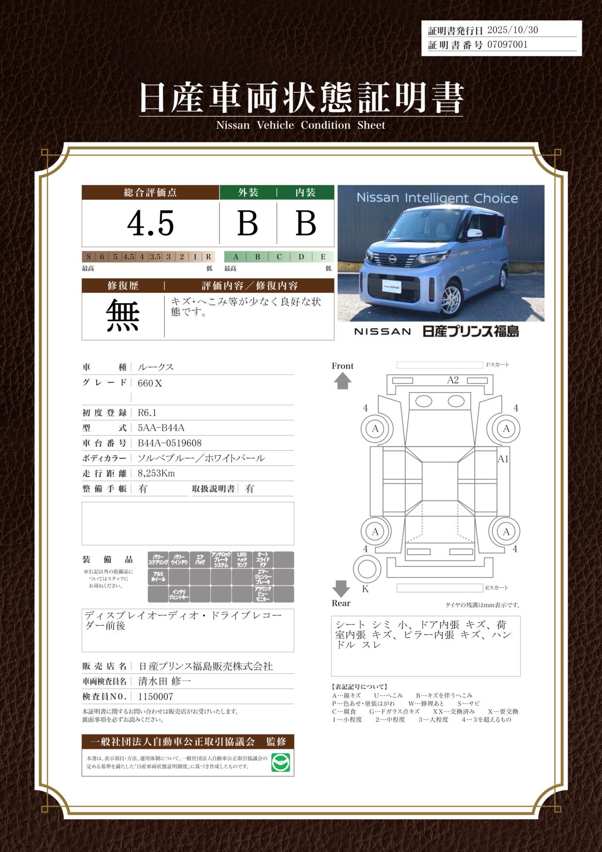 ルークス 660cc 660 X 全周囲カメラ 純正前後ドラレコ 純正9イ