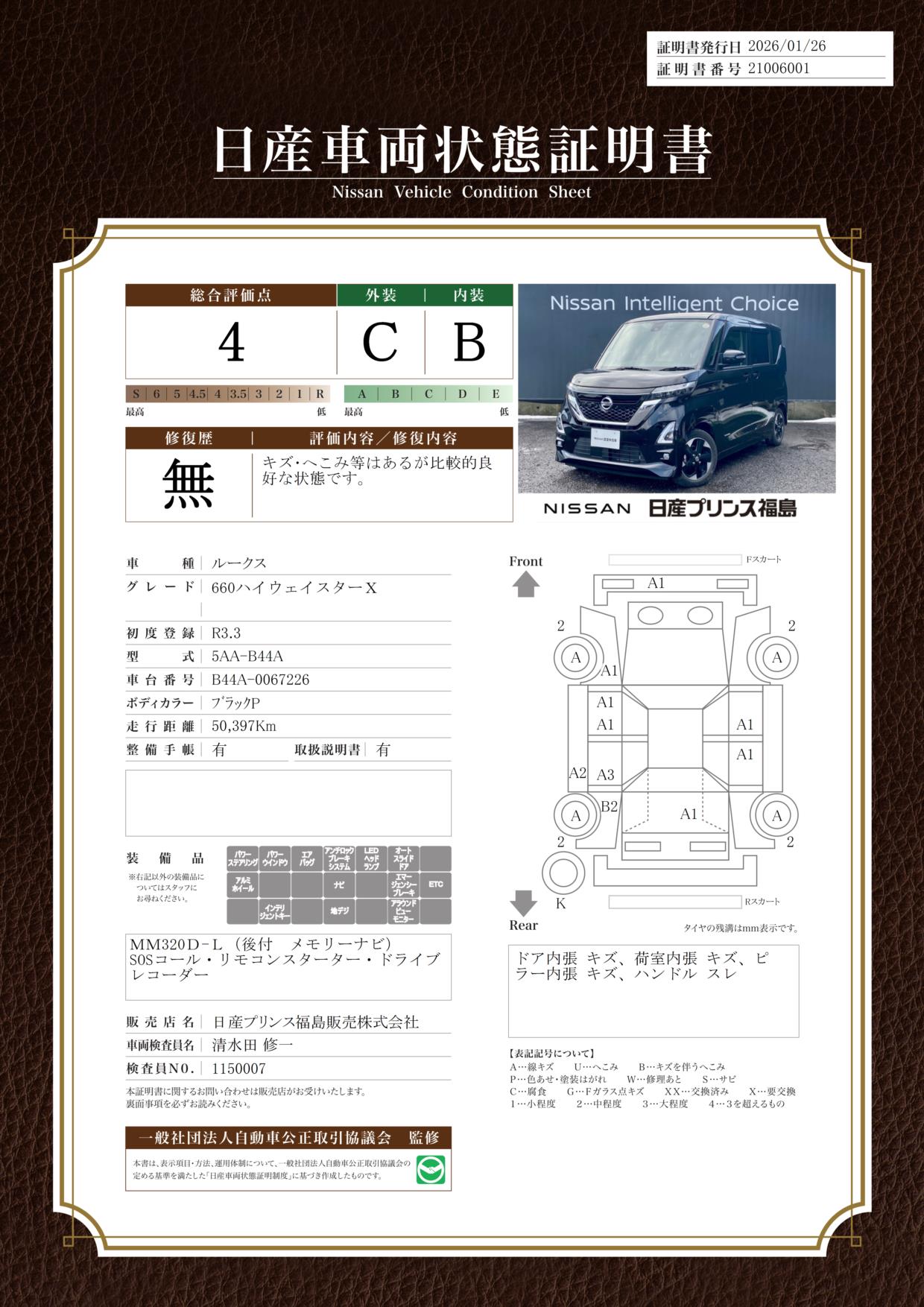 現状括弧書き内の年月まで車検有効期限が残っていますが、ご成約時に新しく車検を取り直します。なお取り直しの費用は車両価格に含まれています。