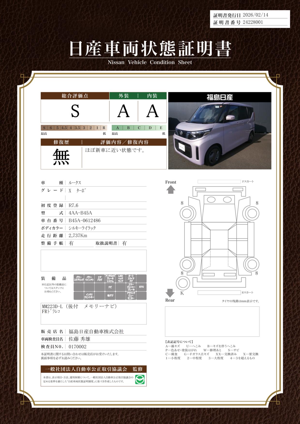 「車両状態証明書」は、査定協会監修のプロの検査員が公正かつ確かな基準で検査した”安心の証”です。
