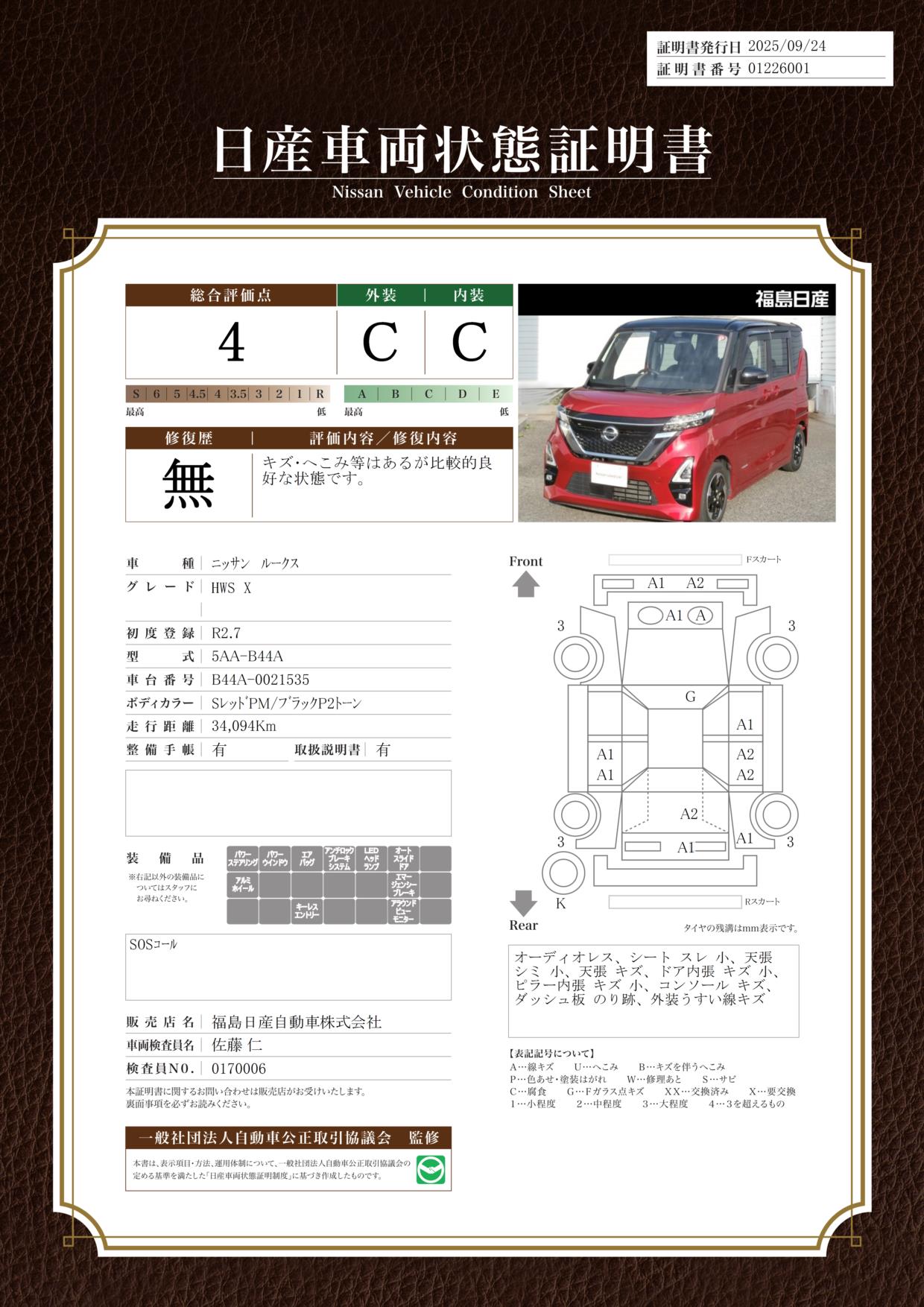 納車時に定期点検整備(費用は車両価格に含まれます。)