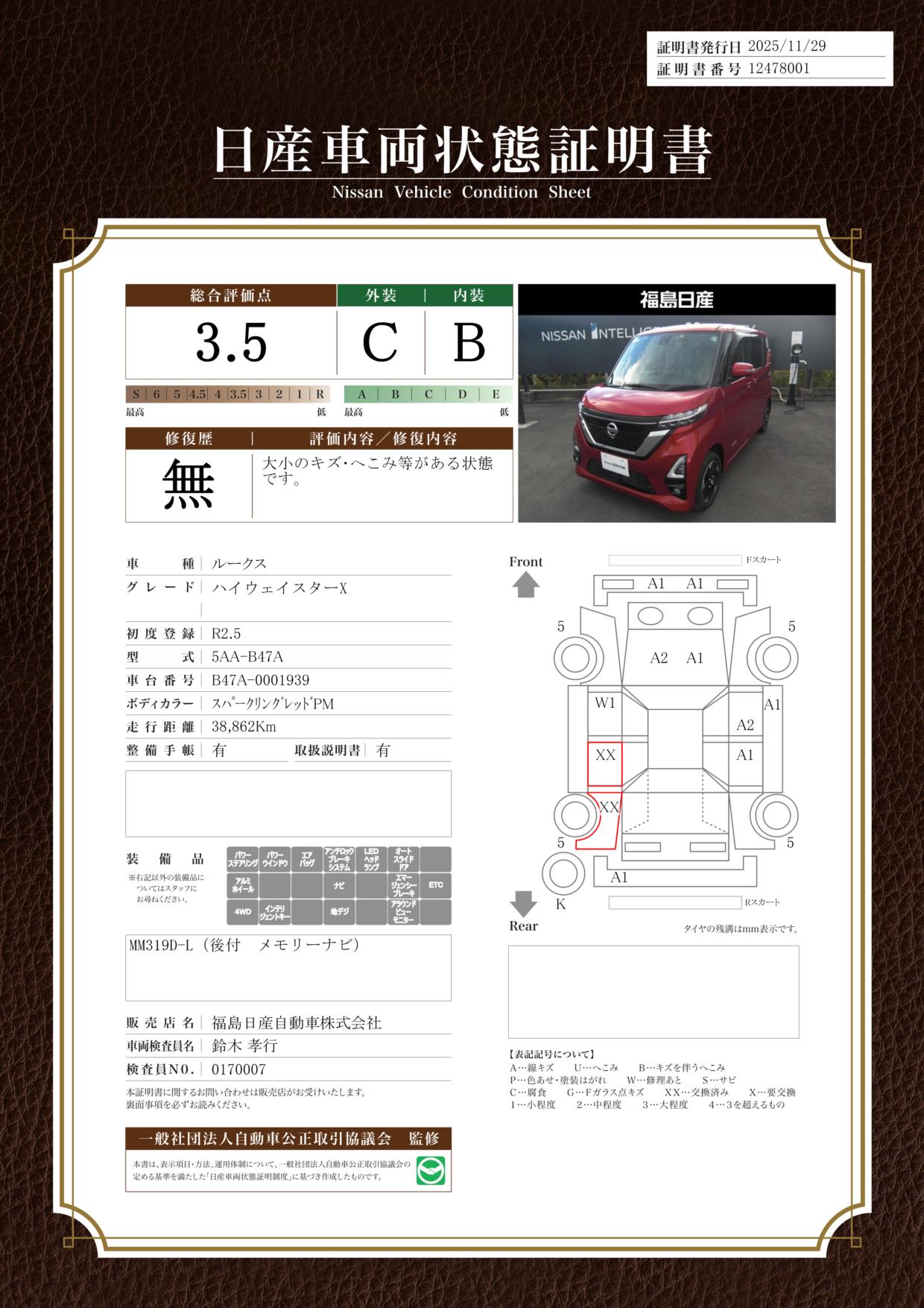 納車時に定期点検整備(費用は車両価格に含まれます。)