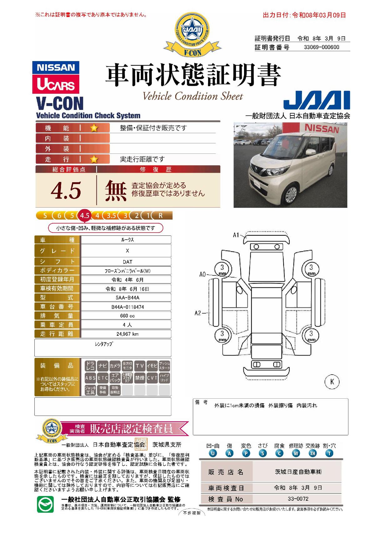 購入から3か月間、走行距離無制限で保証。