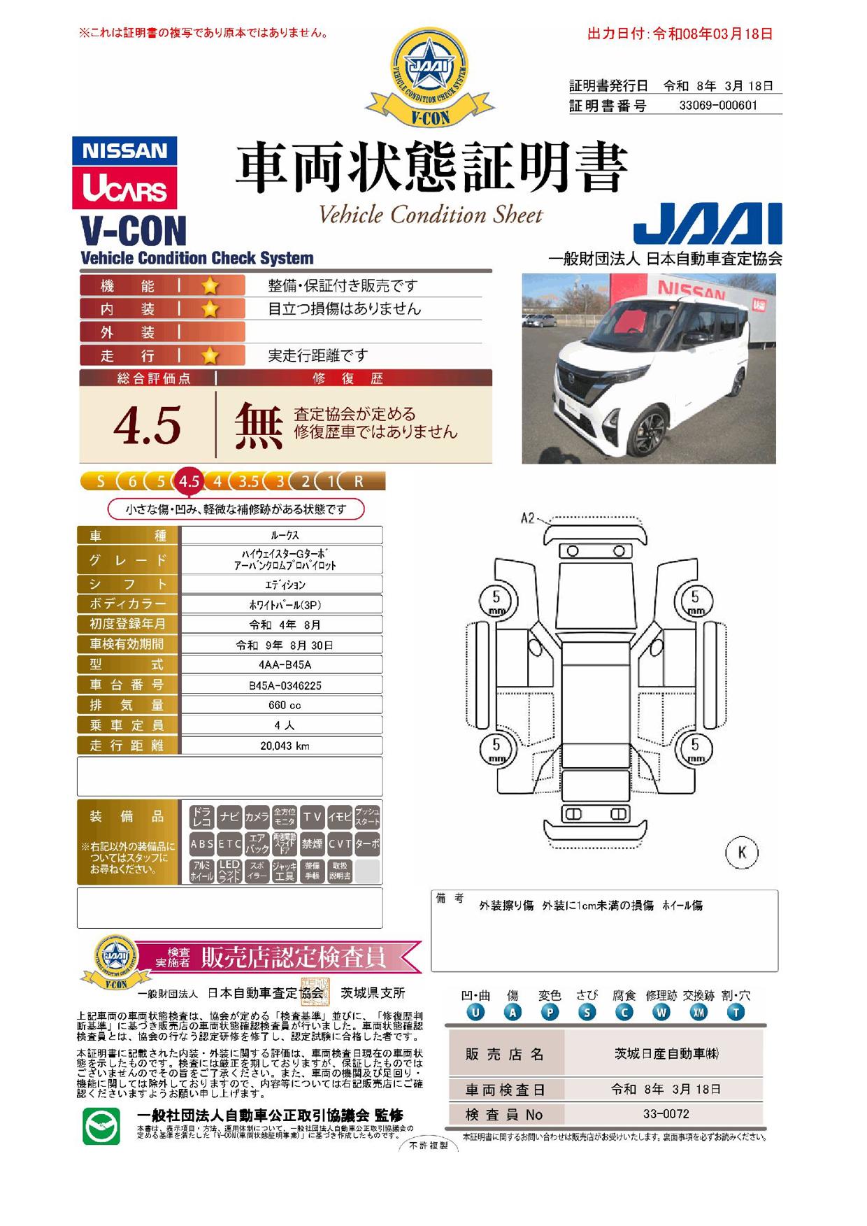 「車両状態証明書」は、査定協会監修のプロの検査員が公正かつ確かな基準で検査した”安心の証”です。