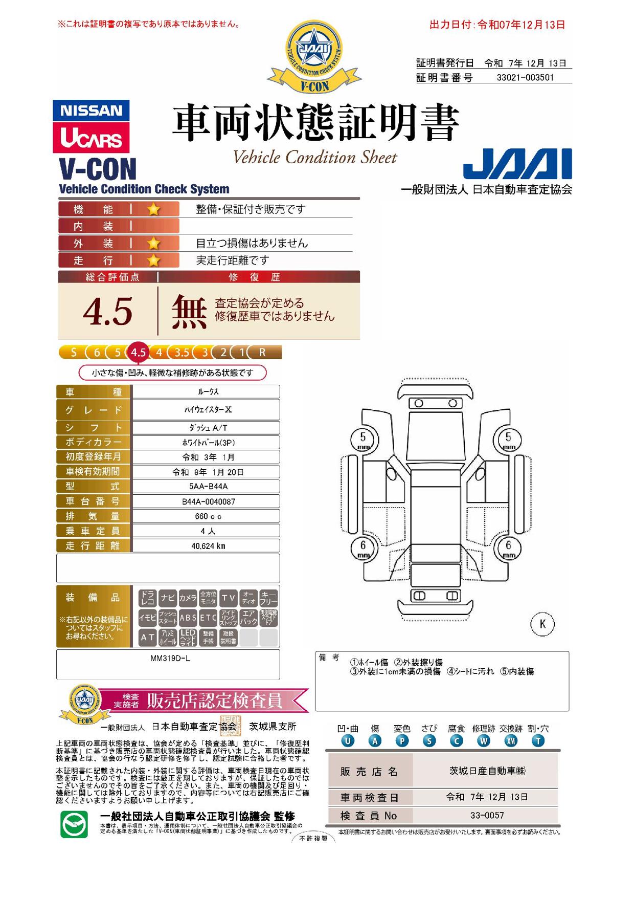 車両状態証明書を見る
