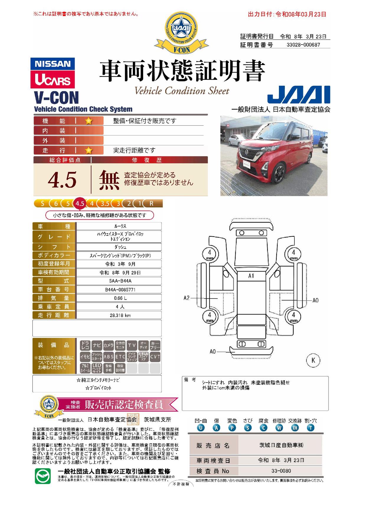 「車両状態証明書」は、査定協会監修のプロの検査員が公正かつ確かな基準で検査した”安心の証”です。