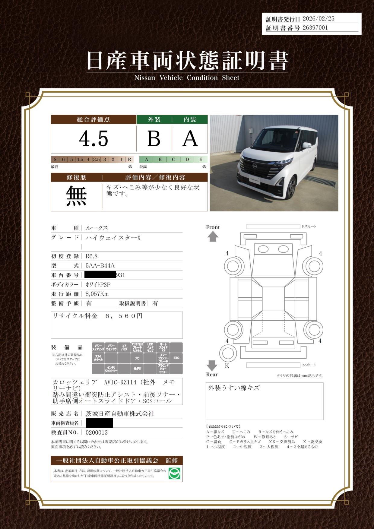 現状括弧書き内の年月まで車検有効期限が残っていますが、ご成約時に新しく車検を取り直します。なお取り直しの費用は車両価格に含まれています。