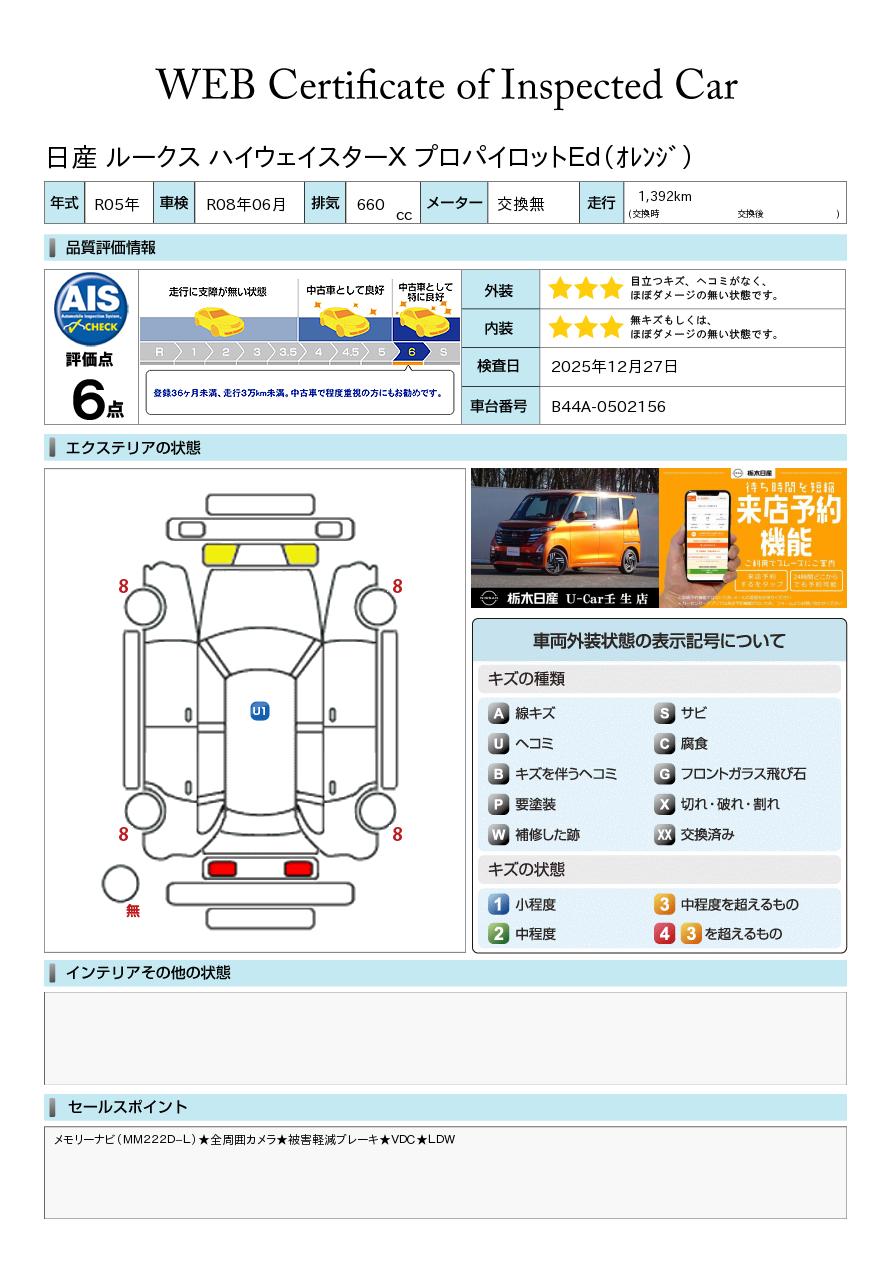現状括弧書き内の年月まで車検有効期限が残っていますが、ご成約時に新しく車検を取り直します。なお取り直しの費用は車両価格に含まれています。