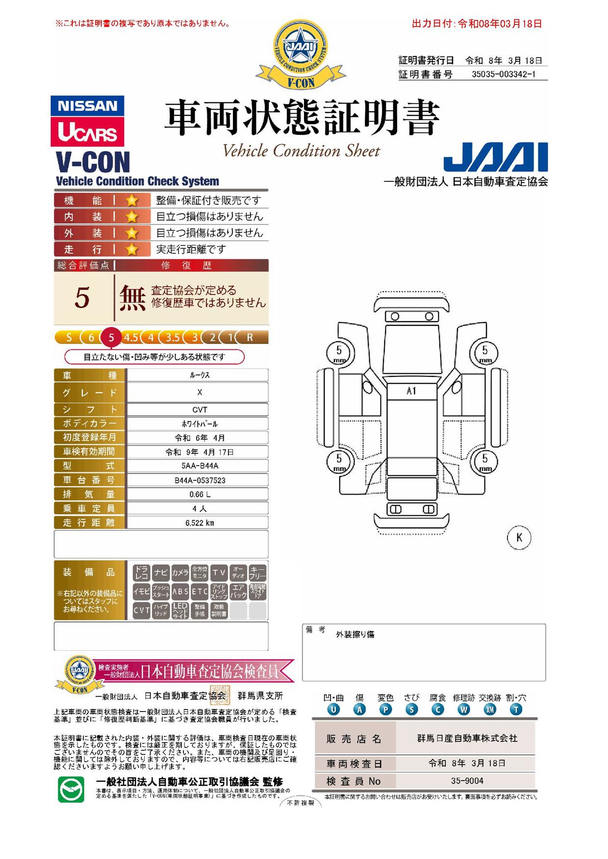 「車両状態証明書」は、査定協会監修のプロの検査員が公正かつ確かな基準で検査した”安心の証”です。