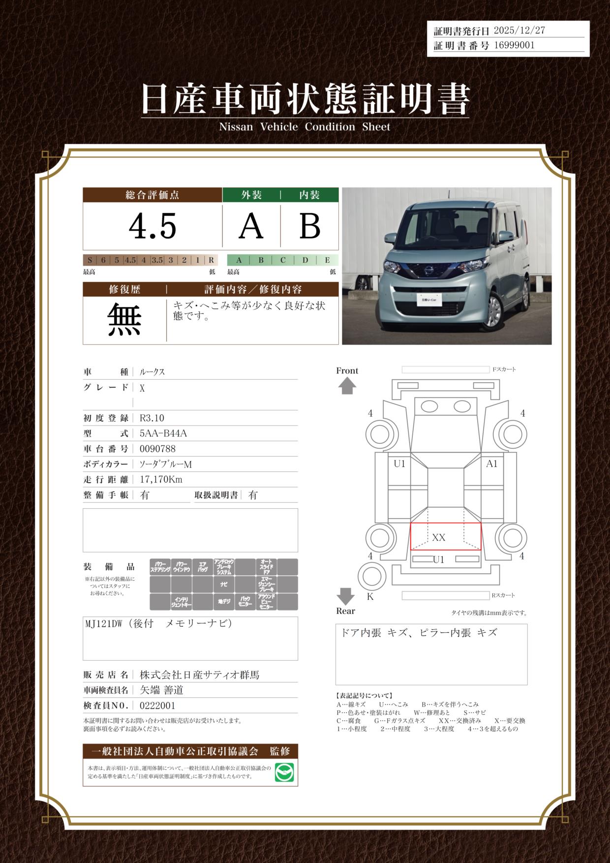 現状括弧書き内の年月まで車検有効期限が残っていますが、ご成約時に新しく車検を取り直します。なお取り直しの費用は車両価格に含まれています。
