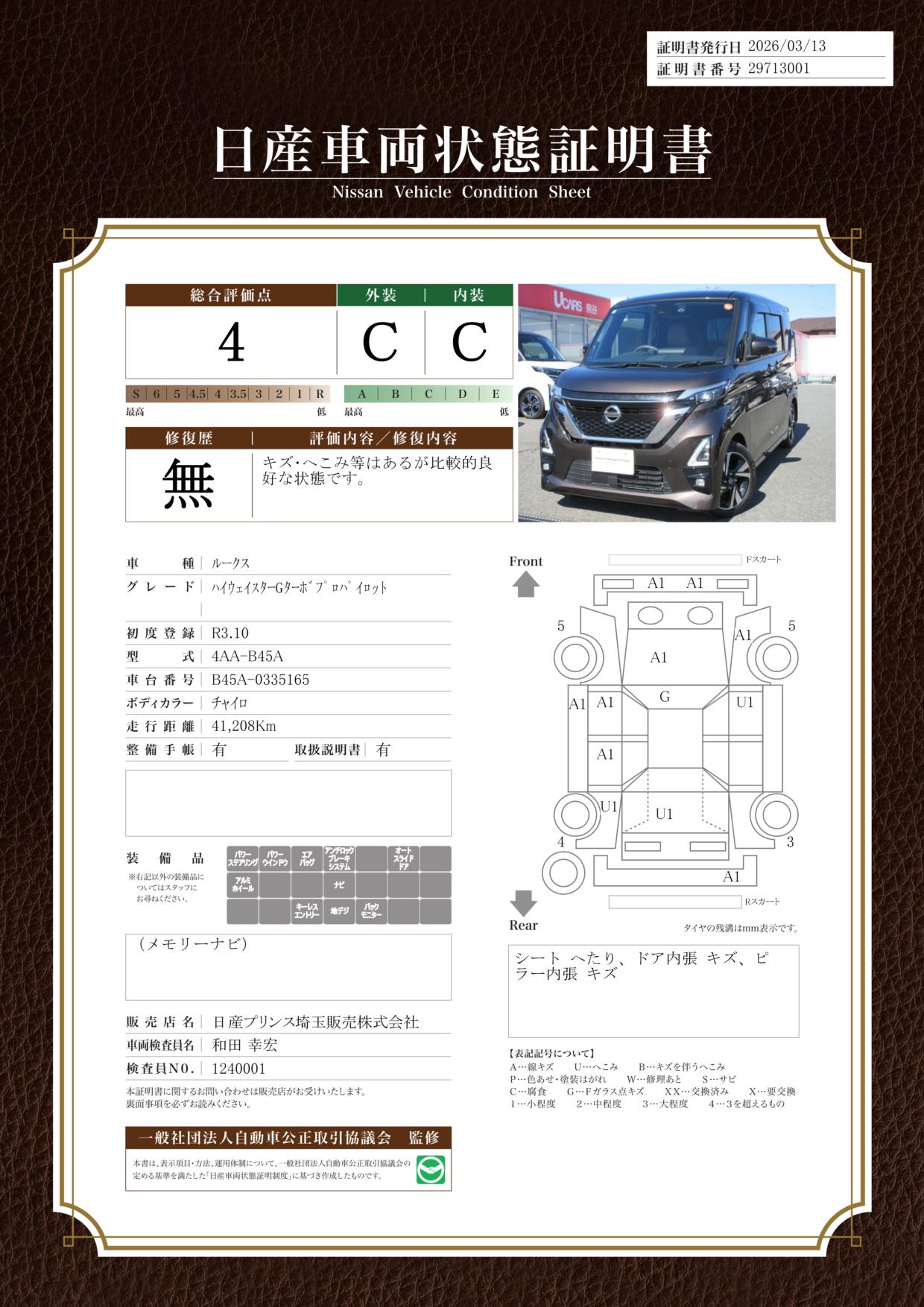 現状車検切れの状態ですが、ご成約時に新しく車検を実施します。車検費用は車両価格に含まれています。
