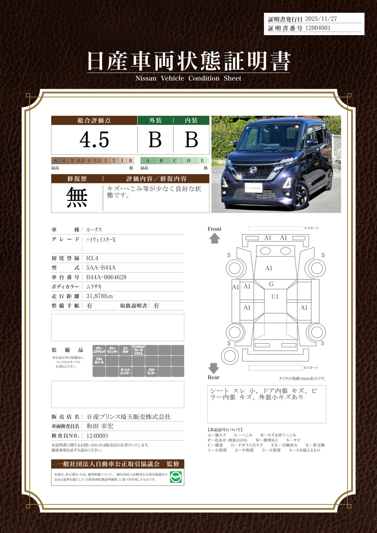 ◎当店の在庫車をご覧いただきまして誠にありがとうございます◎ <店舗インフォメ-ション> 12/9(火)12/10(水)は定休日となります 12/6(土)~12/21(日)迄の期間は【日産プリンス埼玉・2025クリスマスフェア】を開催致します。 ディ-ラ-ならではの下取りワンオ-ナ-車を中心に高品質なお買い得価格在庫を多数取り揃えております。成約車両には抗菌コート施工を実施致します。リモ-トでのご対応絶賛受付中♪
