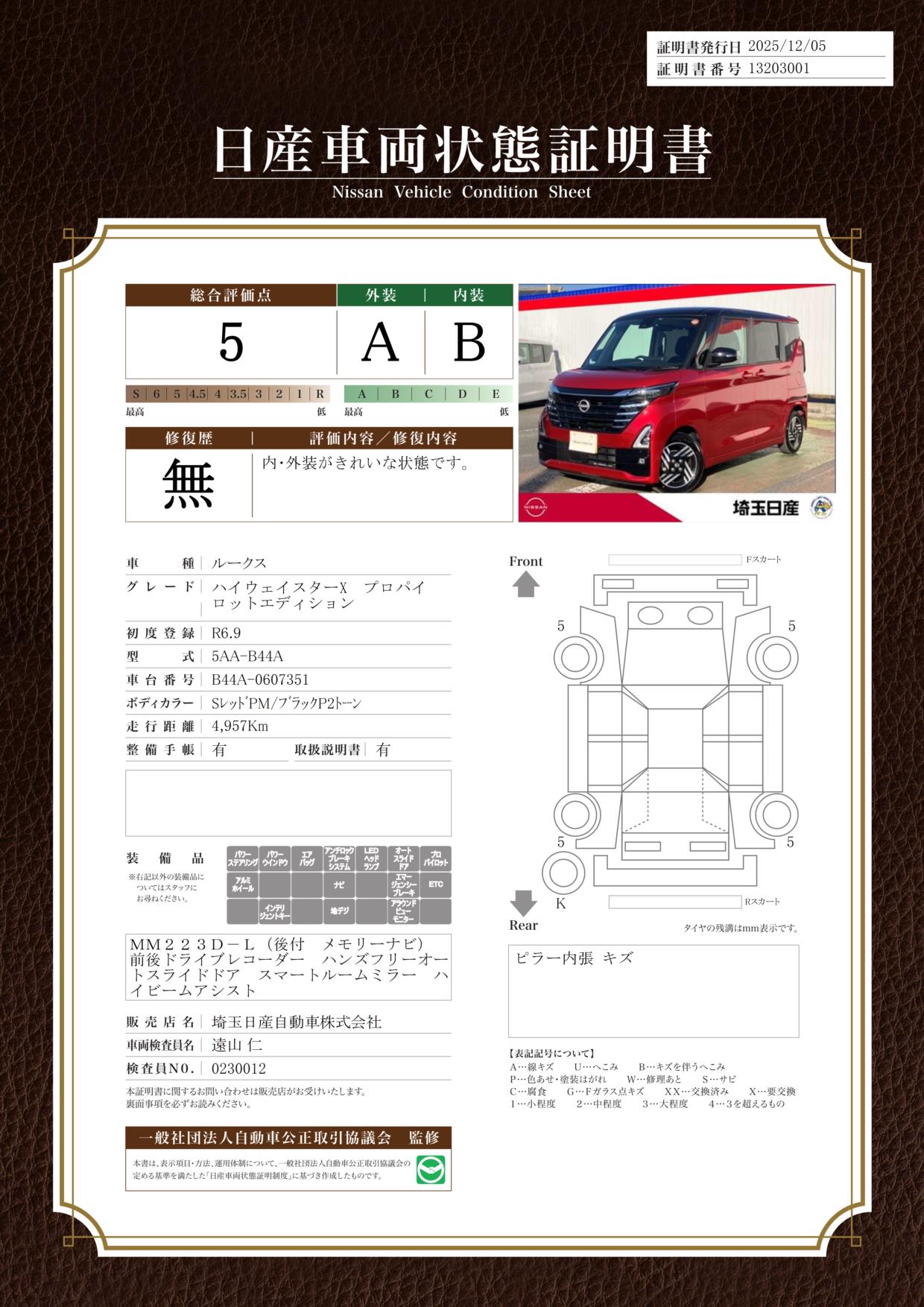 ルークス 660cc 660 ハイウェイスターX プロパイロット エディション 社用車 禁煙車 ナビ AVM ドラレコ