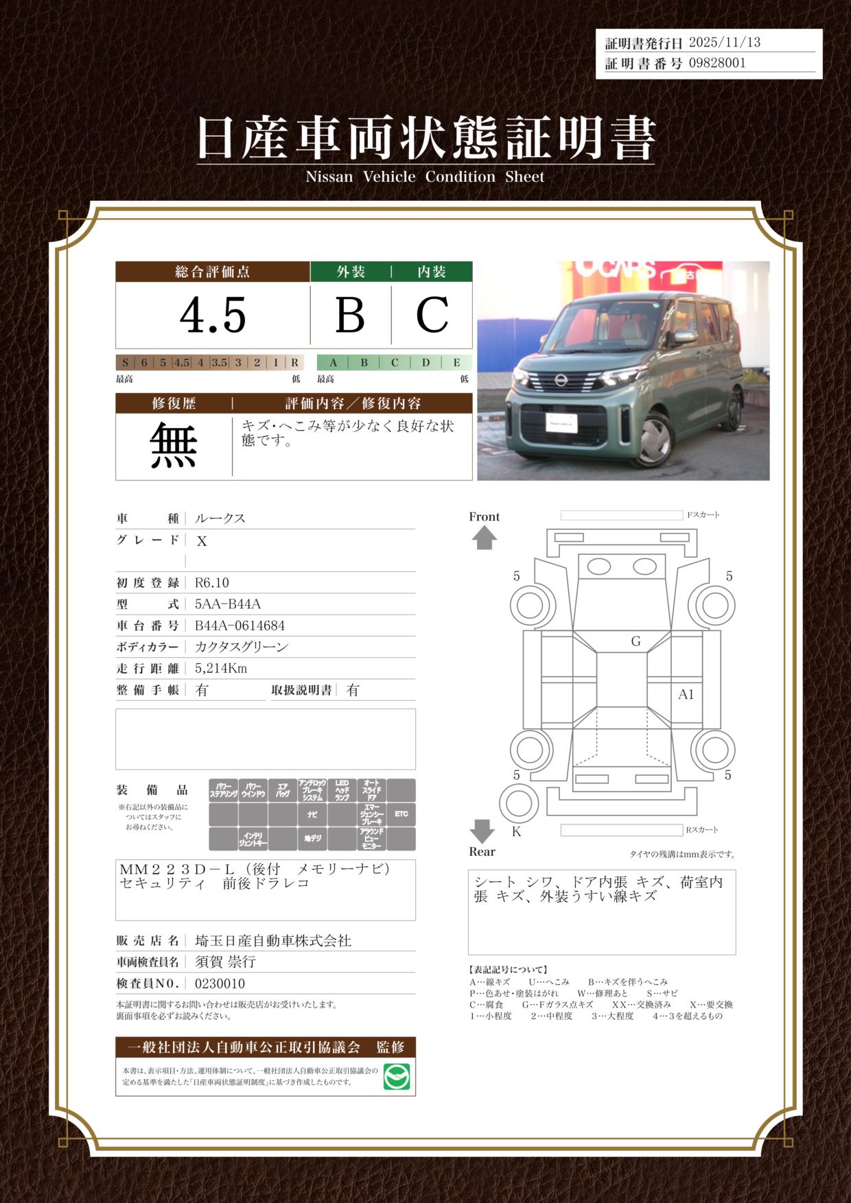 現状括弧書き内の年月まで車検有効期限が残っていますが、ご成約時に新しく車検を取り直します。なお取り直しの費用は車両価格に含まれています。