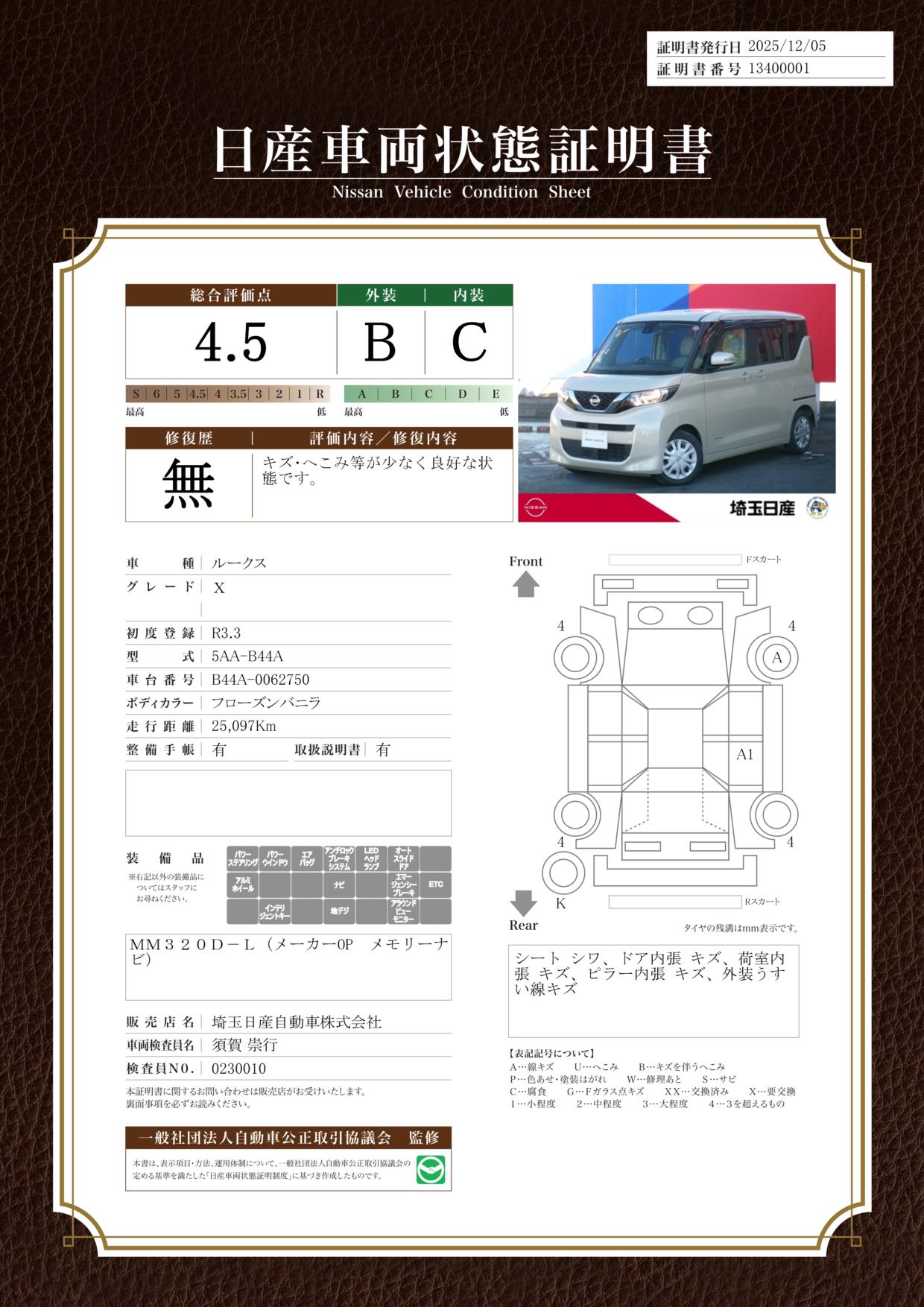 現状括弧書き内の年月まで車検有効期限が残っていますが、ご成約時に新しく車検を取り直します。なお取り直しの費用は車両価格に含まれています。