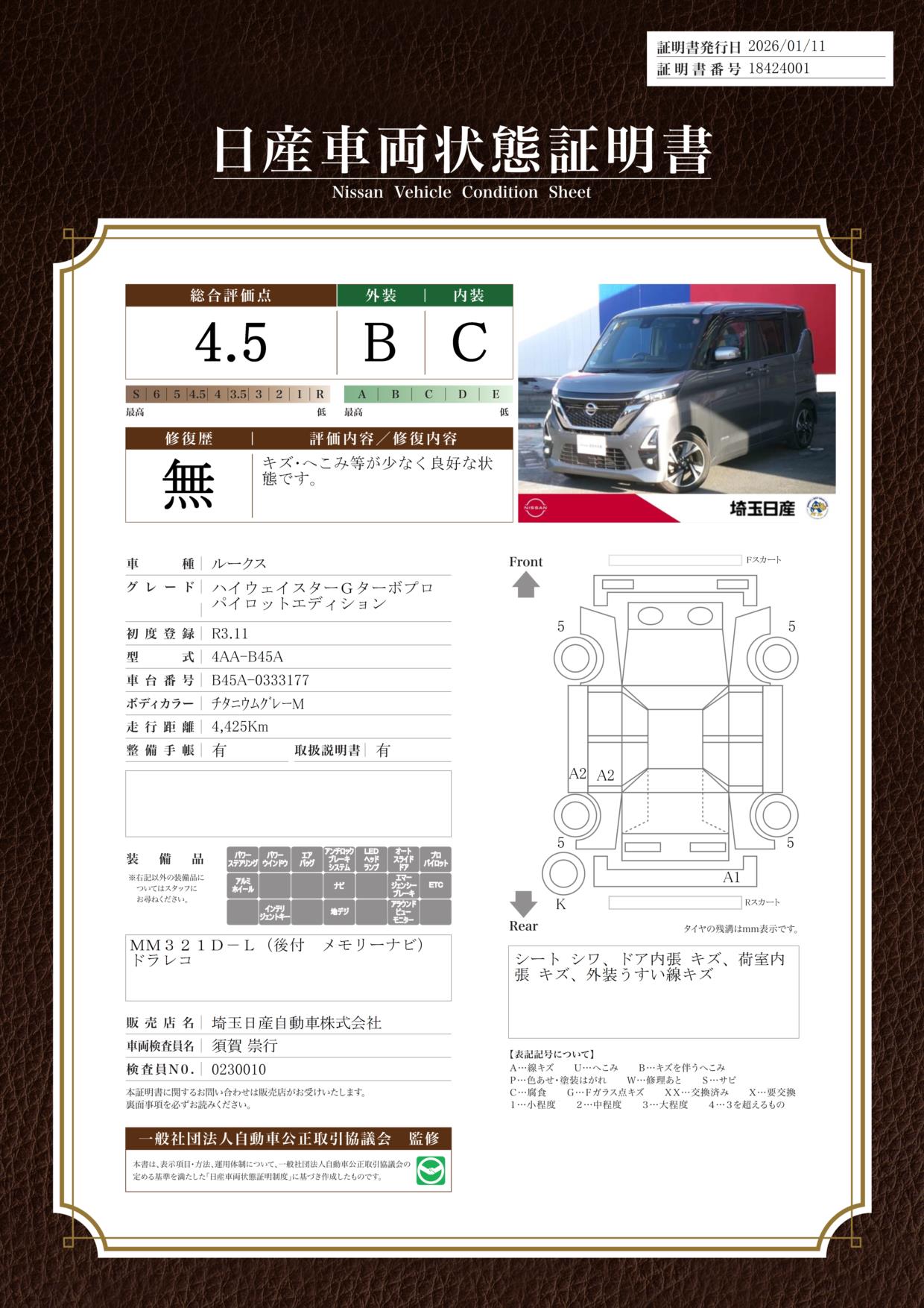 現状車検切れの状態ですが、ご成約時に新しく車検を実施します。車検費用は車両価格に含まれています。