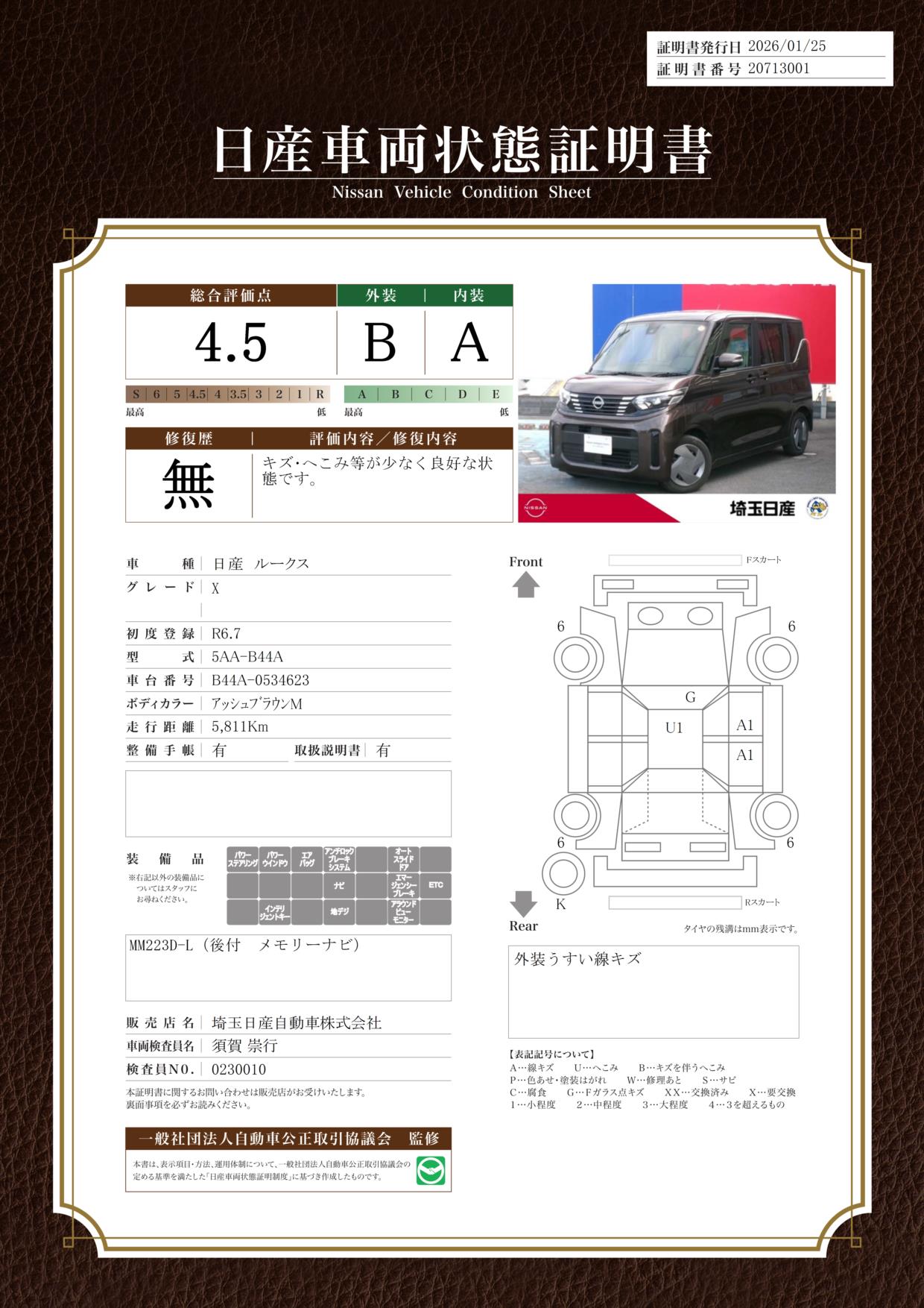 現状括弧書き内の年月まで車検有効期限が残っていますが、ご成約時に新しく車検を取り直します。なお取り直しの費用は車両価格に含まれています。