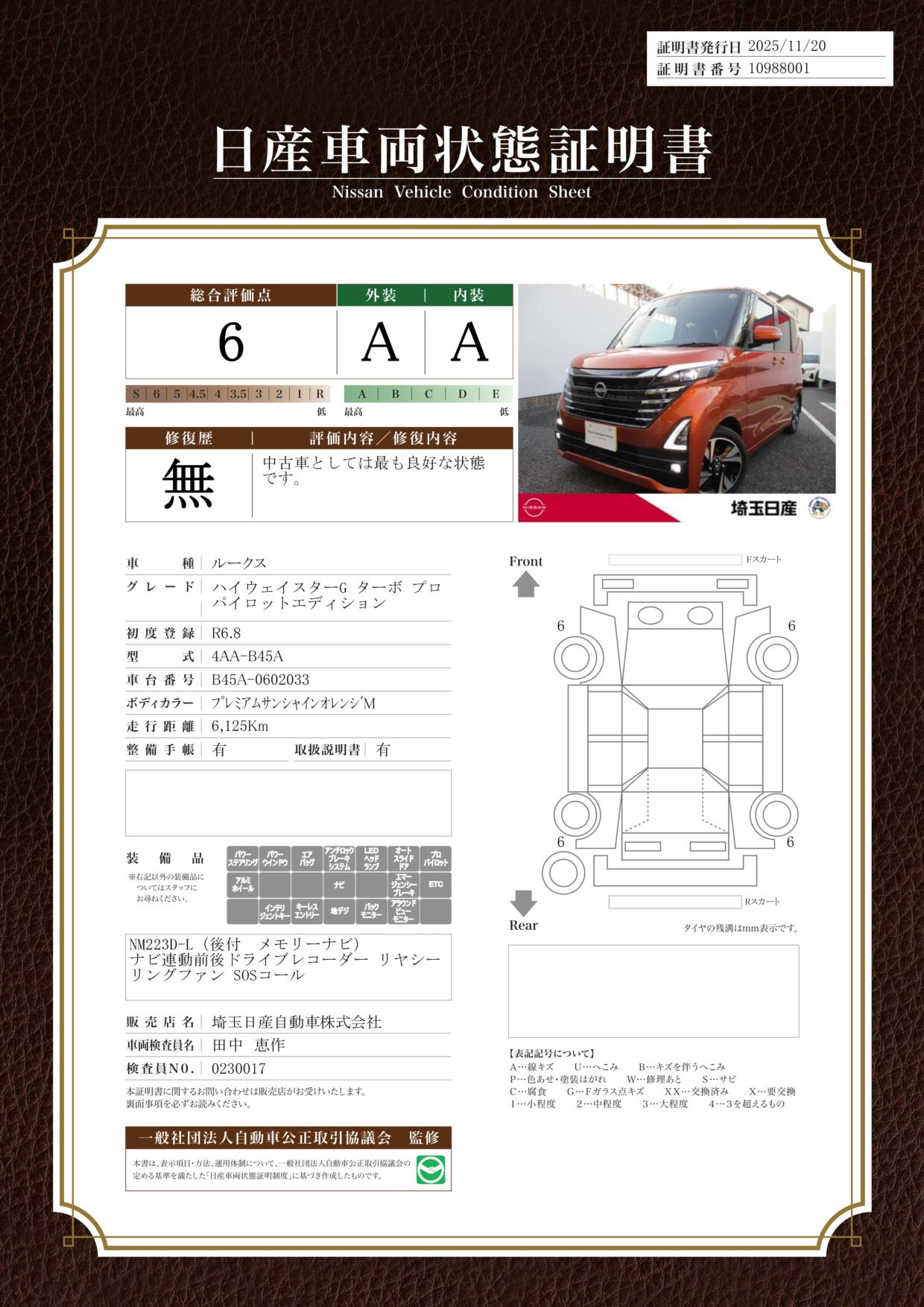 評価機関 : 日産車両状態証明