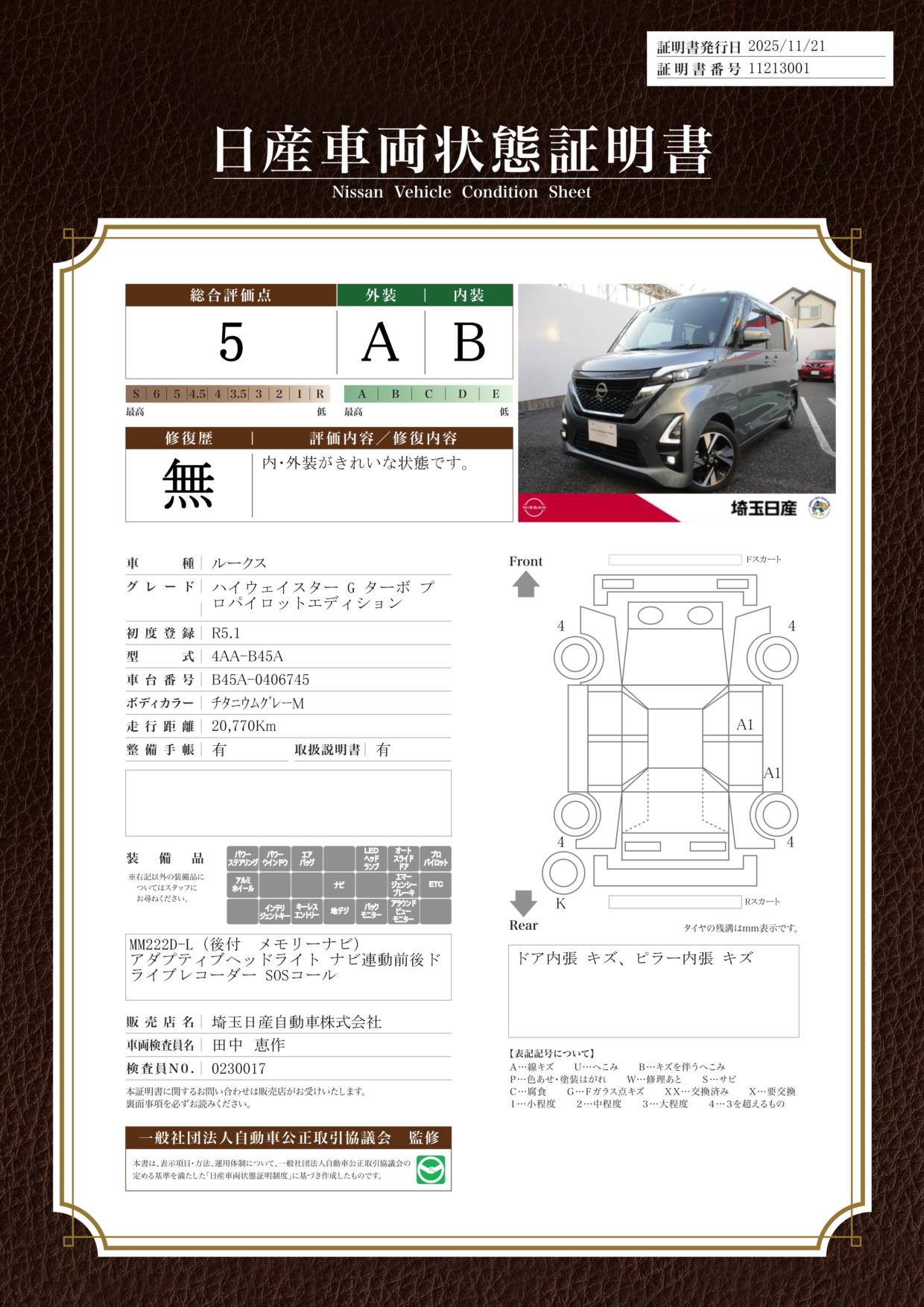 現状車検切れの状態ですが、ご成約時に新しく車検を実施します。車検費用は車両価格に含まれています。