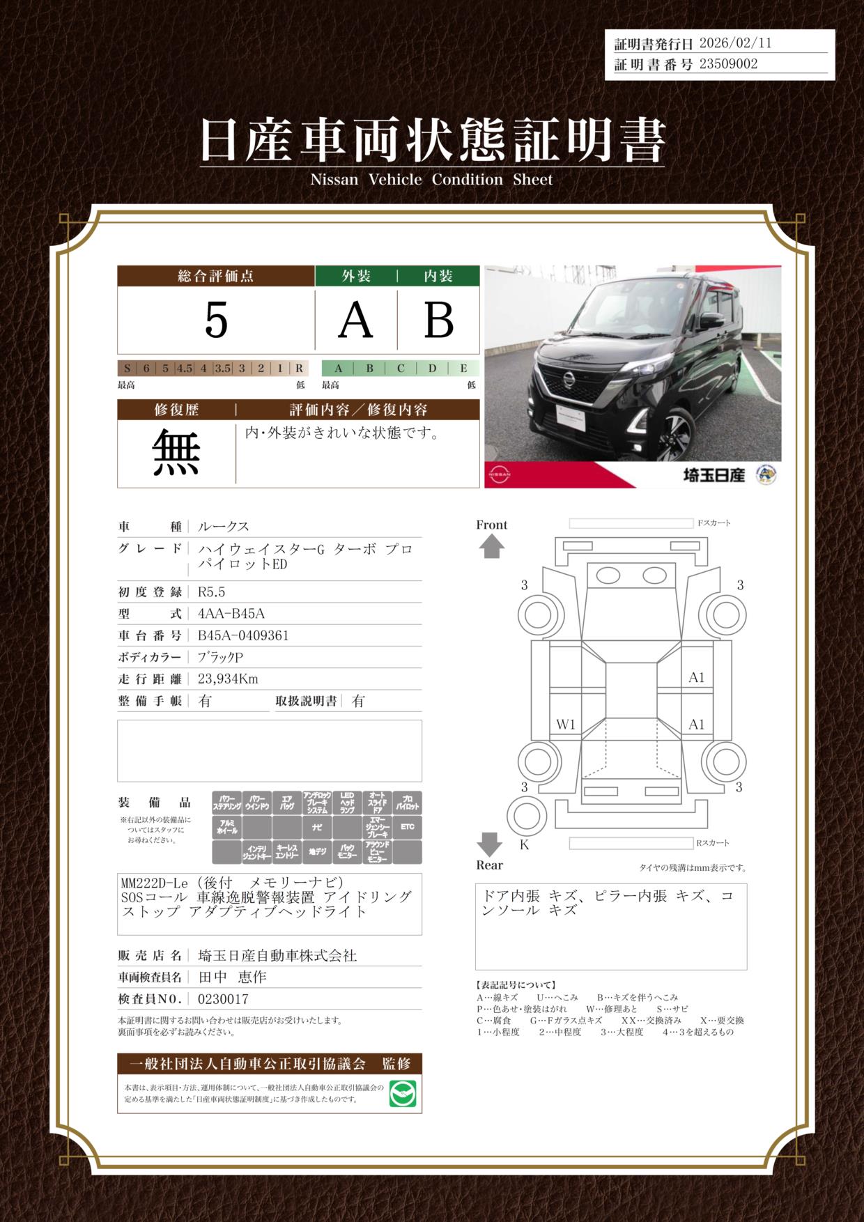 現状括弧書き内の年月まで車検有効期限が残っていますが、ご成約時に新しく車検を取り直します。なお取り直しの費用は車両価格に含まれています。
