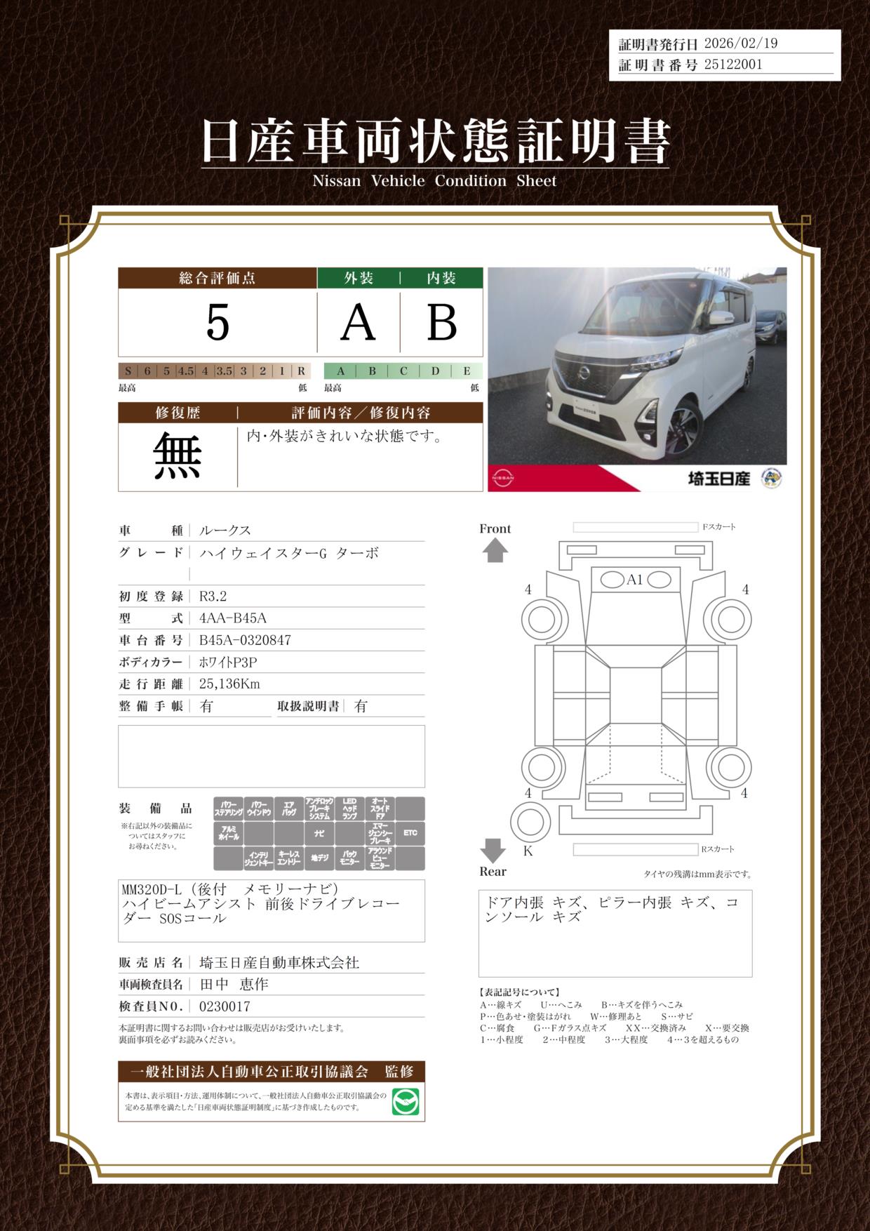 現状車検切れの状態ですが、ご成約時に新しく車検を実施します。車検費用は車両価格に含まれています。