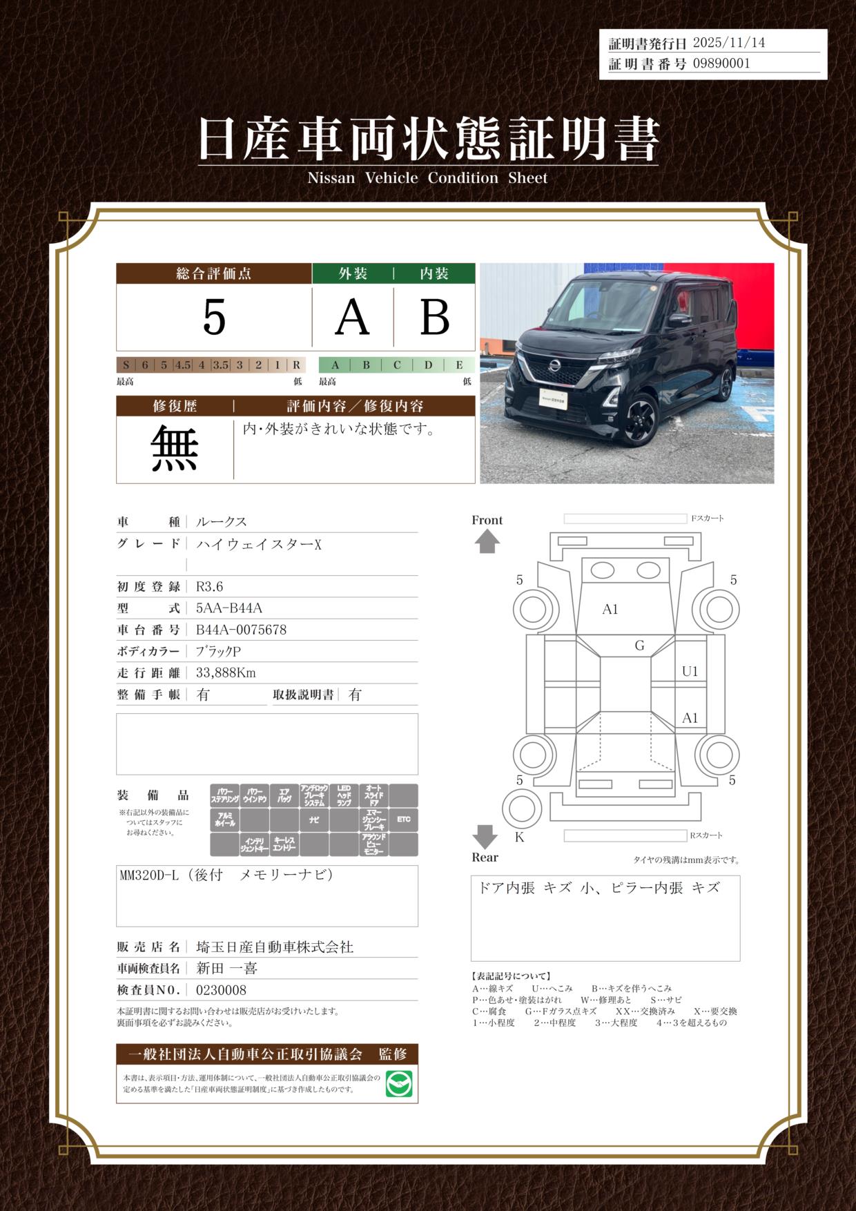 現状車検切れの状態ですが、ご成約時に新しく車検を実施します。車検費用は車両価格に含まれています。