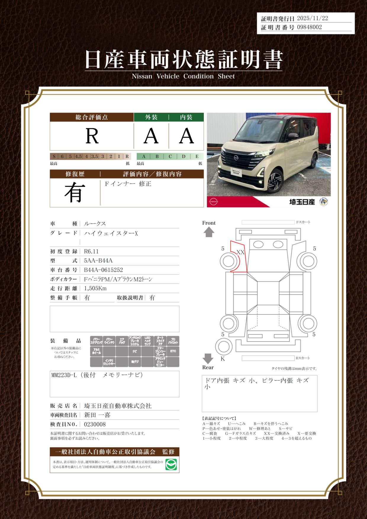 現状車検切れの状態ですが、ご成約時に新しく車検を実施します。車検費用は車両価格に含まれています。