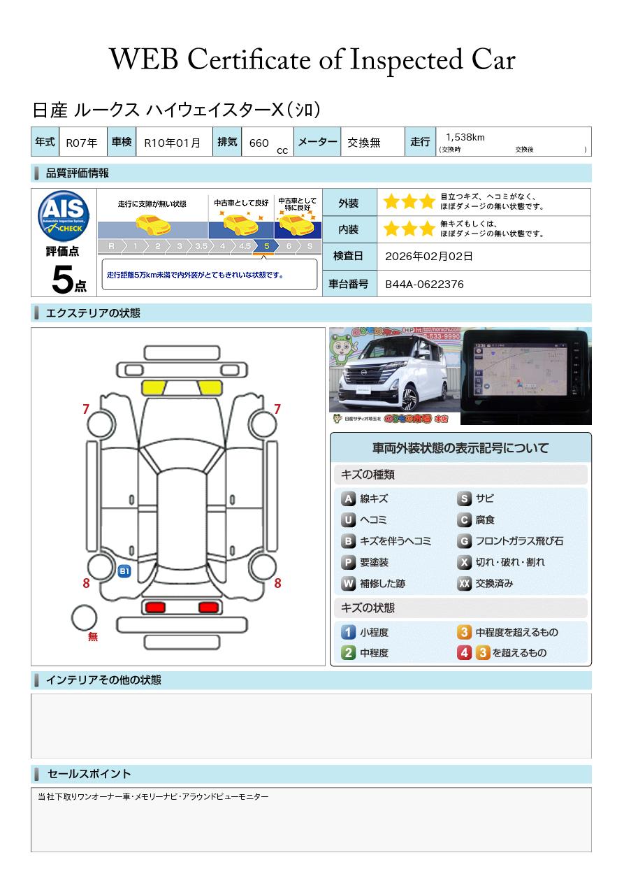現状括弧書き内の年月まで車検有効期限が残っていますが、ご成約時に新しく車検を取り直します。なお取り直しの費用は車両価格に含まれています。