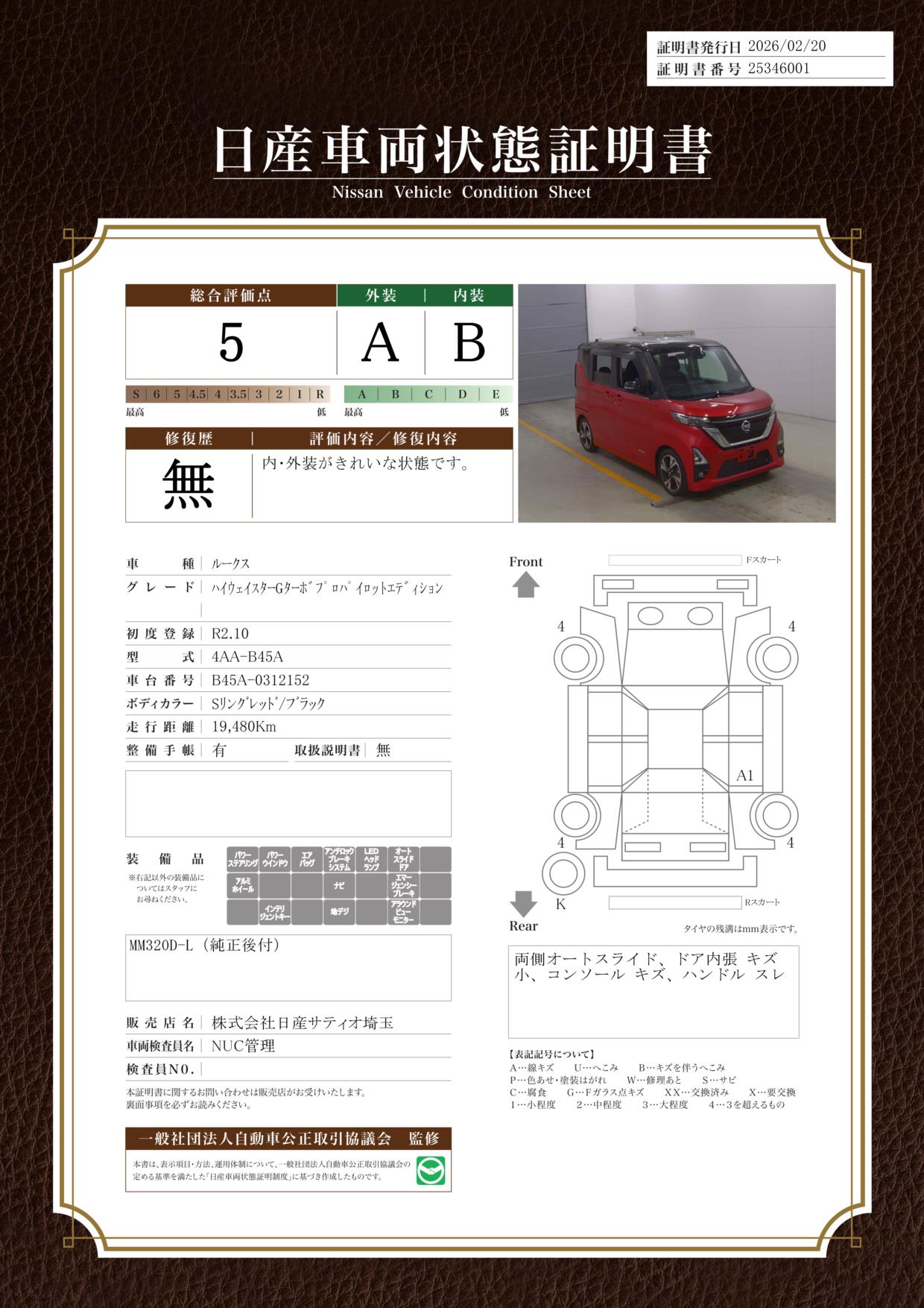 ご覧頂き有難うございます。当店に無いお車をお探しの場合でもお声掛け下さい。ご希望のお車をお探しします。全車安心の日産ワイド保証をお付けし販売致しております。全国納車も可能ですのでお気軽にご相談下さい。電車でお越しの際は JR川越線東武東上線:川越駅 西武新宿線:南大塚駅までお迎えに参ります。お気軽にお電話ください。 お車でお越し場合は 関越自動車道川越インタ-から国道16号線をさいたま市方面にお進み下さい。 お問い合せの際には「カーセンサ-を見た」とお知らせ下さい。