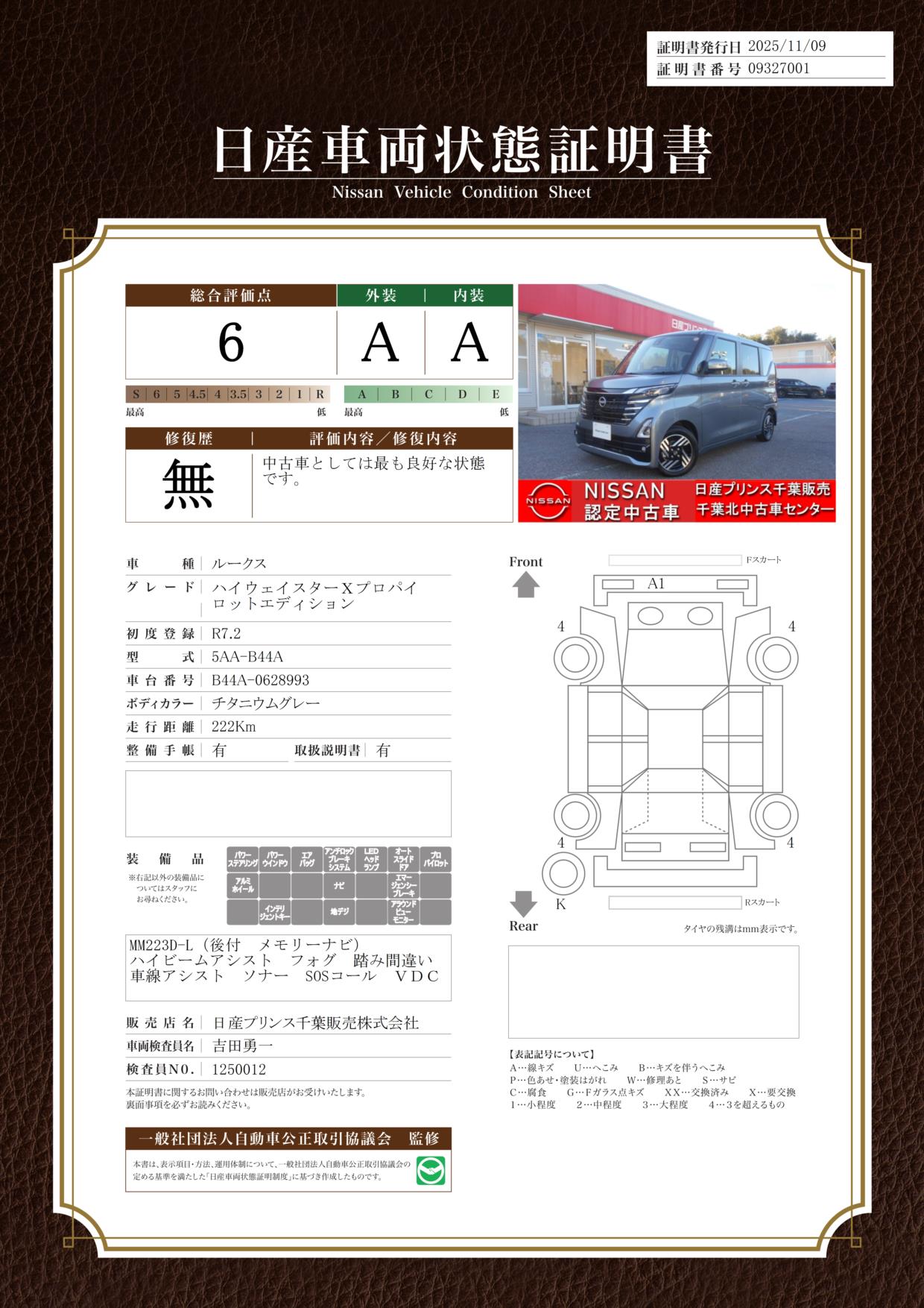評価機関 : 日産車両状態証明