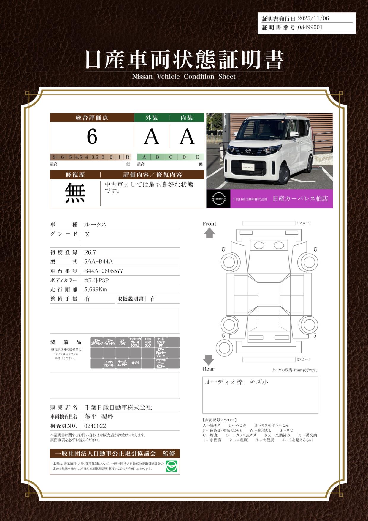 評価機関 : 日産車両状態証明