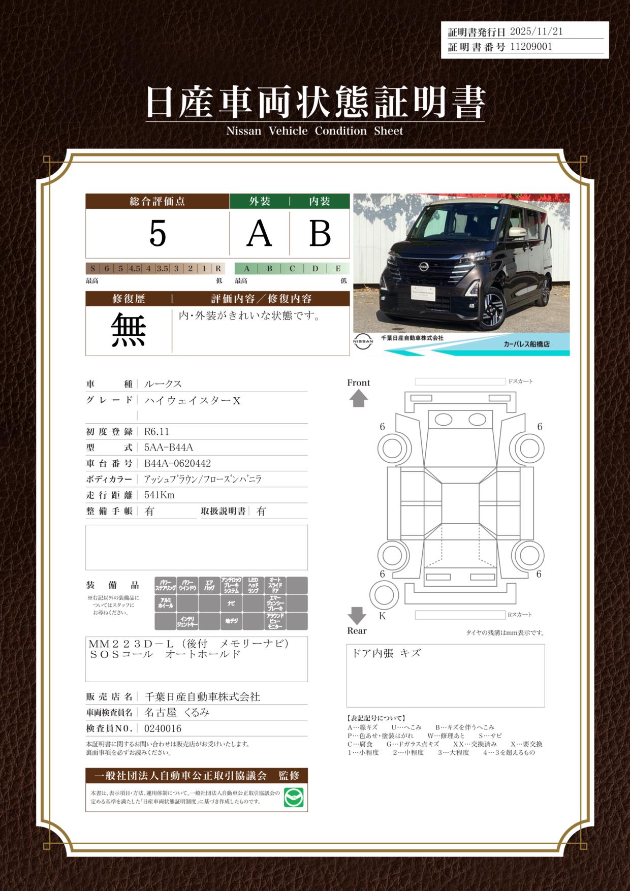 評価機関 : 日産車両状態証明