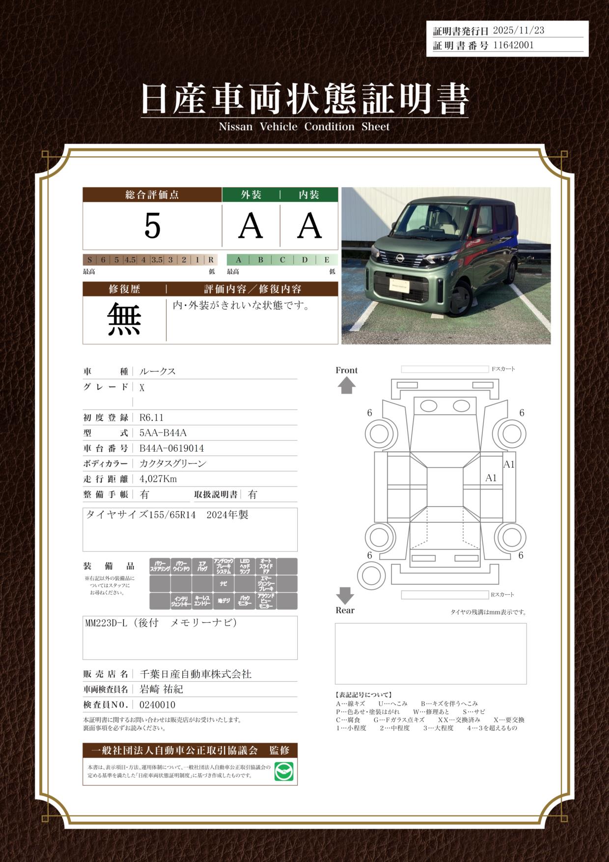 ルークス 660cc 660 X 当社試乗車アップ・純正9インチメモリナビ