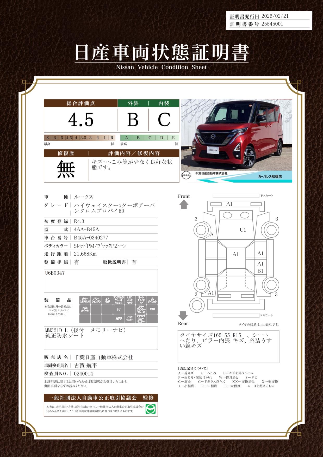 現状括弧書き内の年月まで車検有効期限が残っていますが、ご成約時に新しく車検を取り直します。なお取り直しの費用は車両価格に含まれています。
