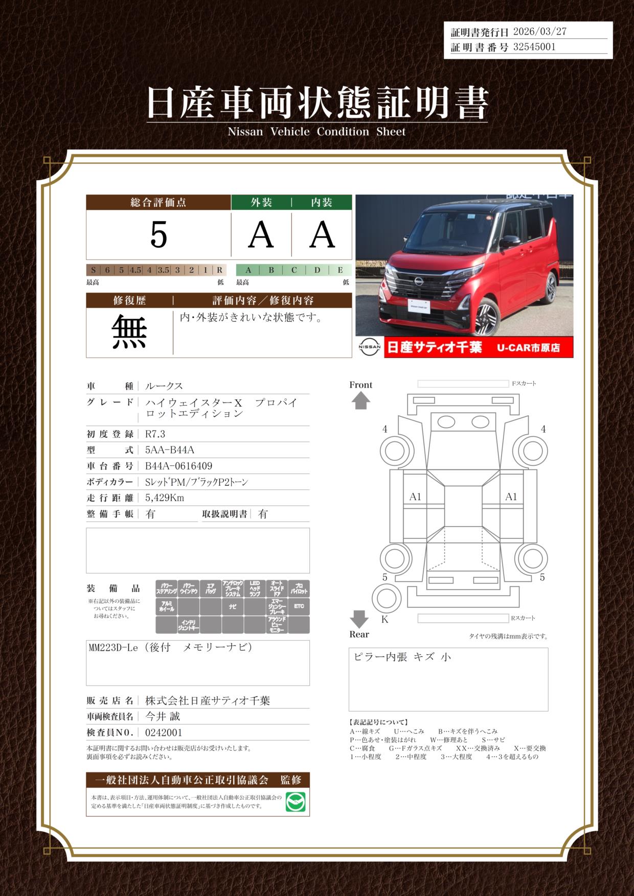 日産車両状態証明