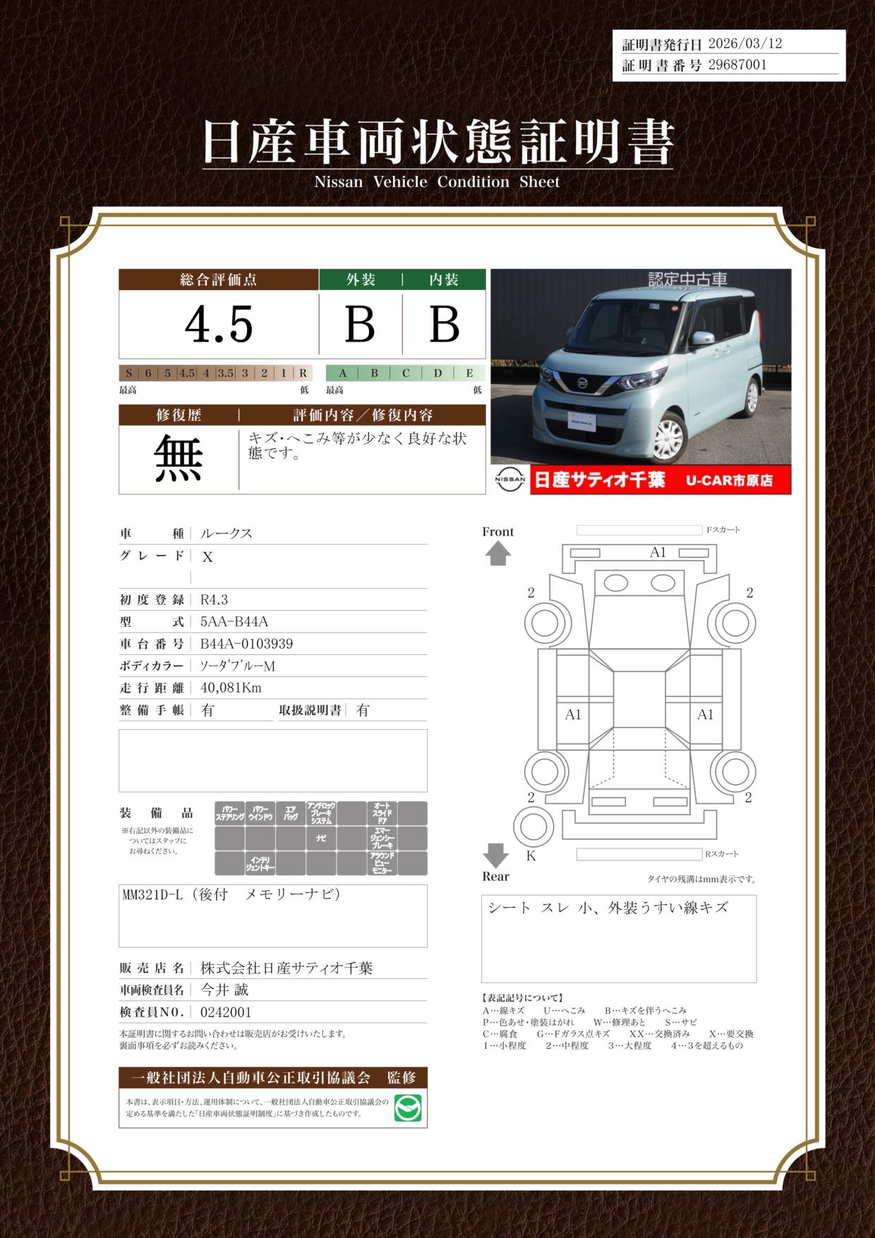 現状括弧書き内の年月まで車検有効期限が残っていますが、ご成約時に新しく車検を取り直します。なお取り直しの費用は車両価格に含まれています。