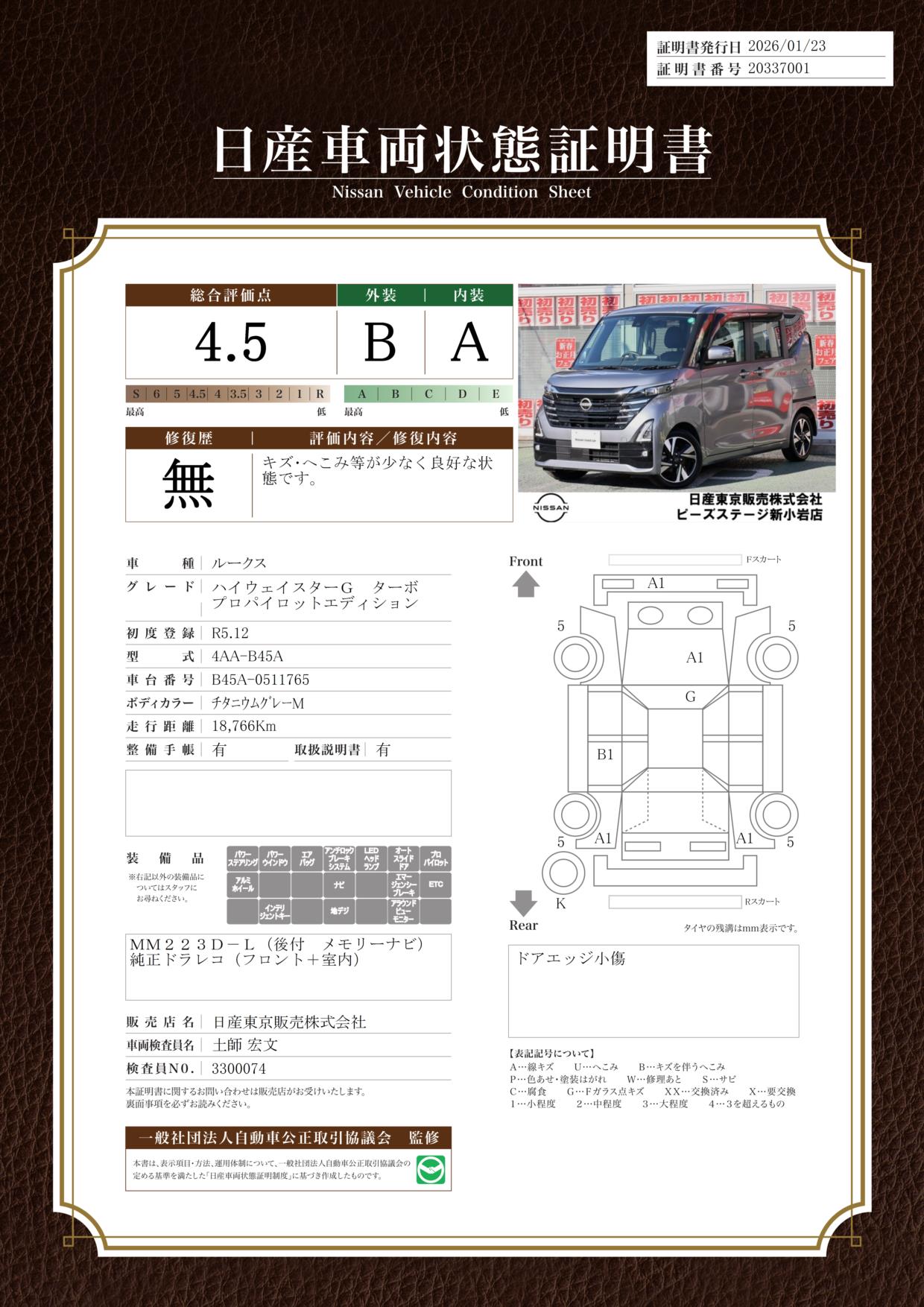 現状括弧書き内の年月まで車検有効期限が残っていますが、ご成約時に新しく車検を取り直します。なお取り直しの費用は車両価格に含まれています。