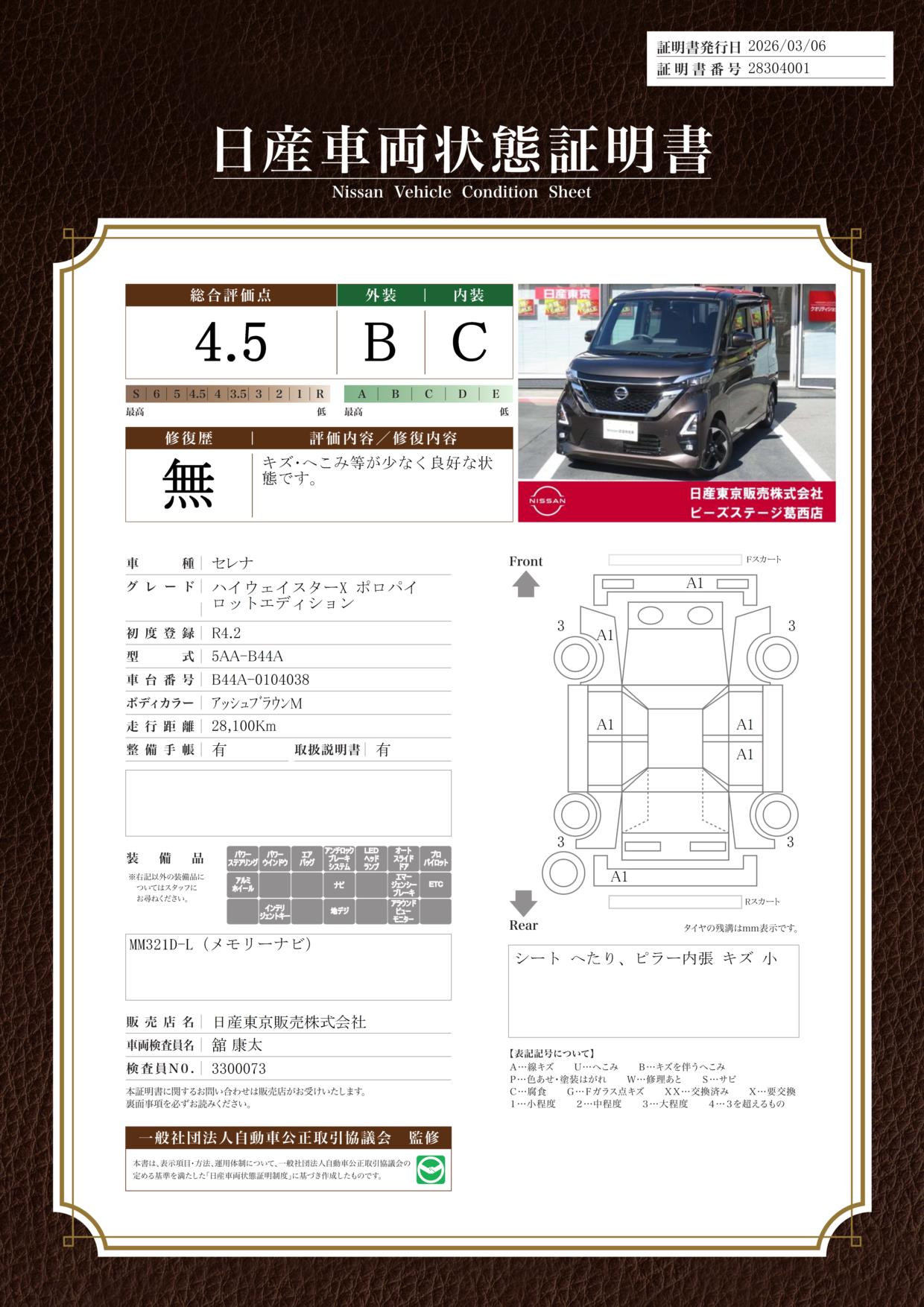 「車両状態証明書」は、査定協会監修のプロの検査員が公正かつ確かな基準で検査した”安心の証”です。
