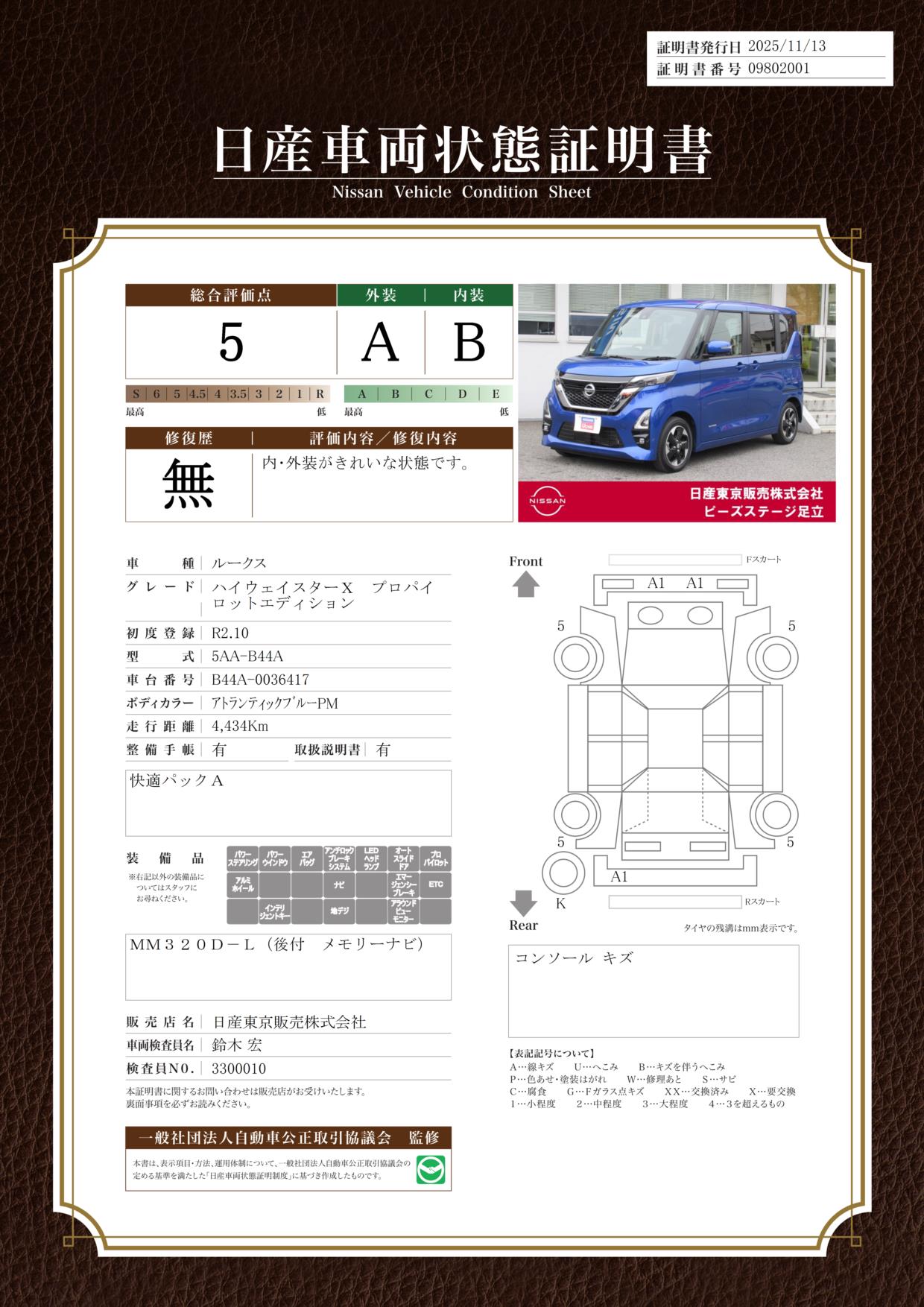 評価機関 : 日産車両状態証明