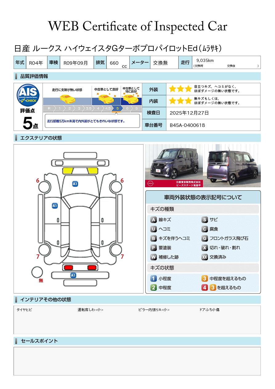 評価点イメージ : 走行距離5万kmまで内外装がとてもきれいな状態です。