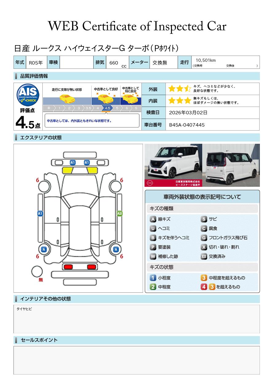 「車両状態証明書」は、査定協会監修のプロの検査員が公正かつ確かな基準で検査した”安心の証”です。