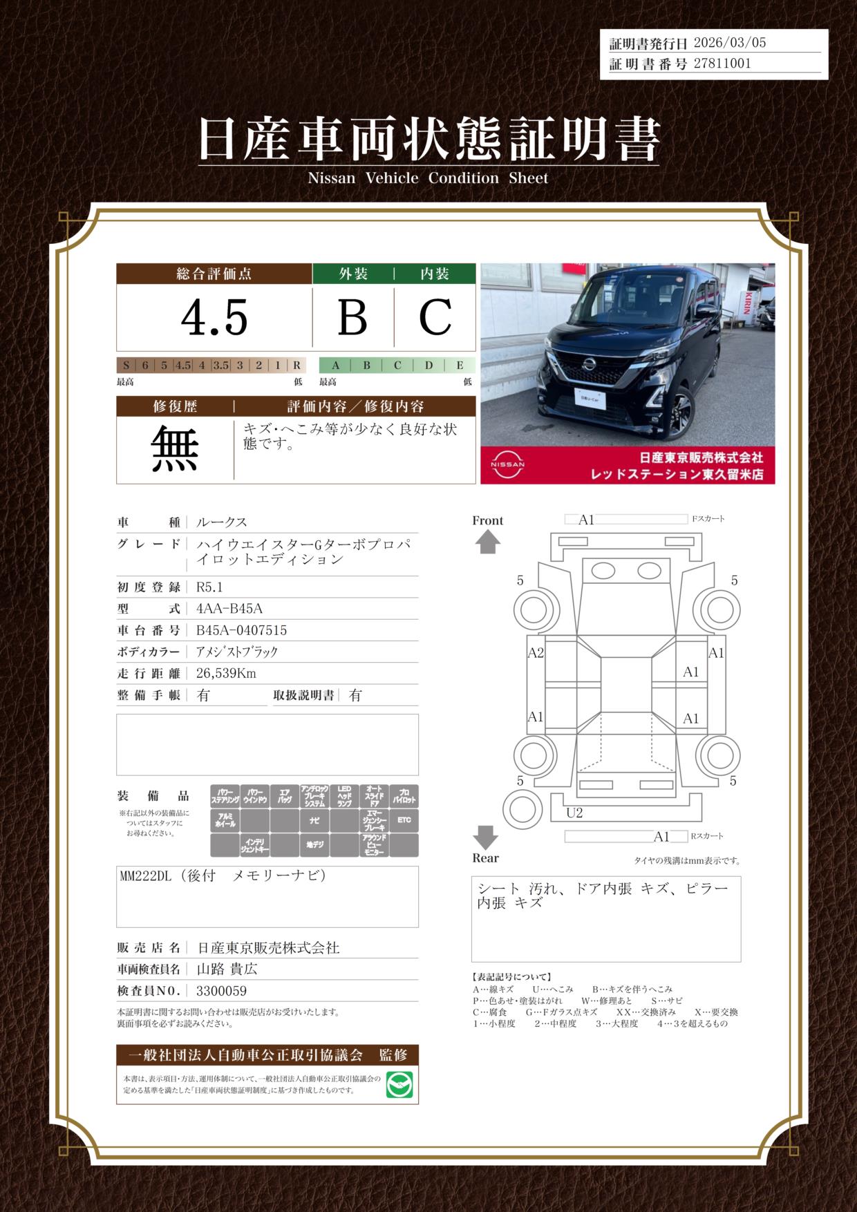 「車両状態証明書」は、査定協会監修のプロの検査員が公正かつ確かな基準で検査した”安心の証”です。