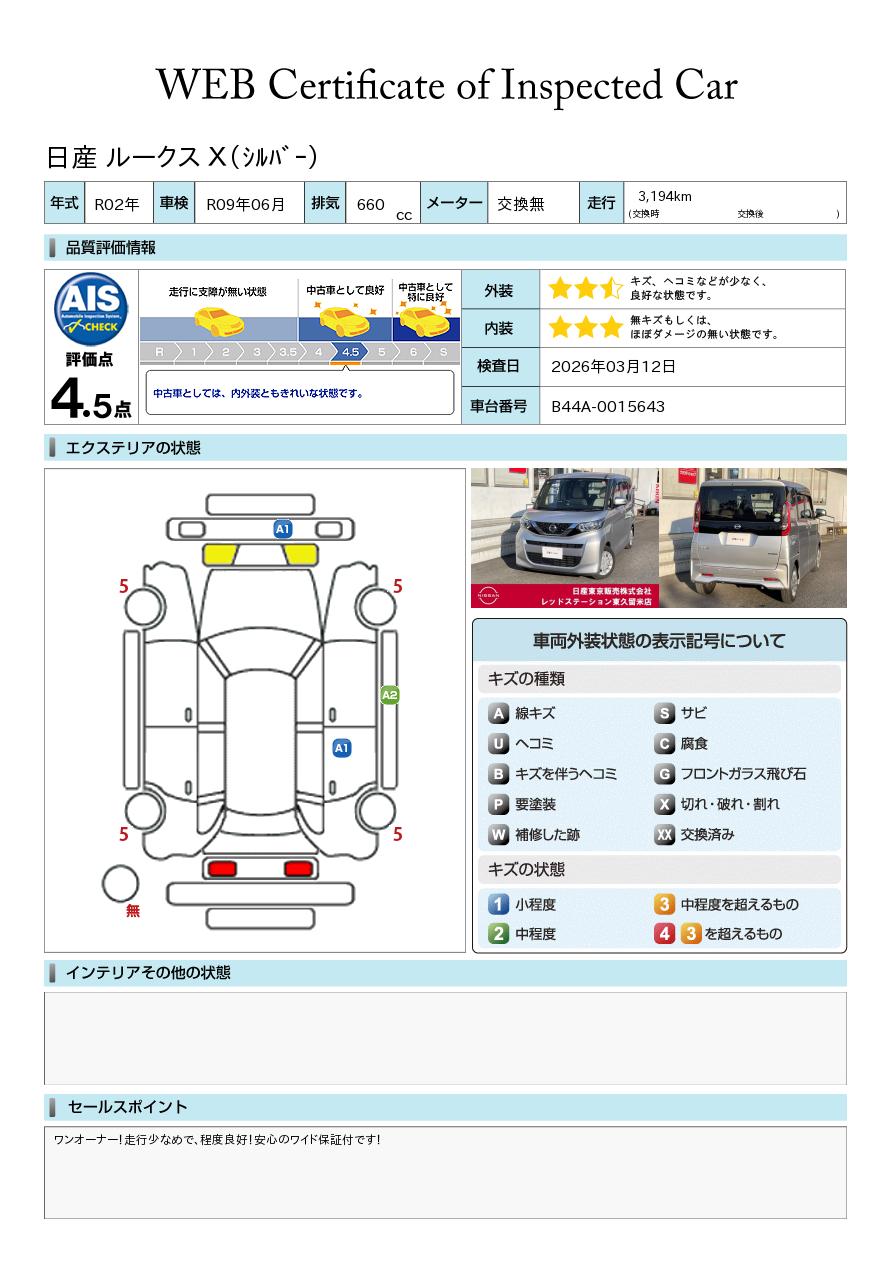現状括弧書き内の年月まで車検有効期限が残っていますが、ご成約時に新しく車検を取り直します。なお取り直しの費用は車両価格に含まれています。